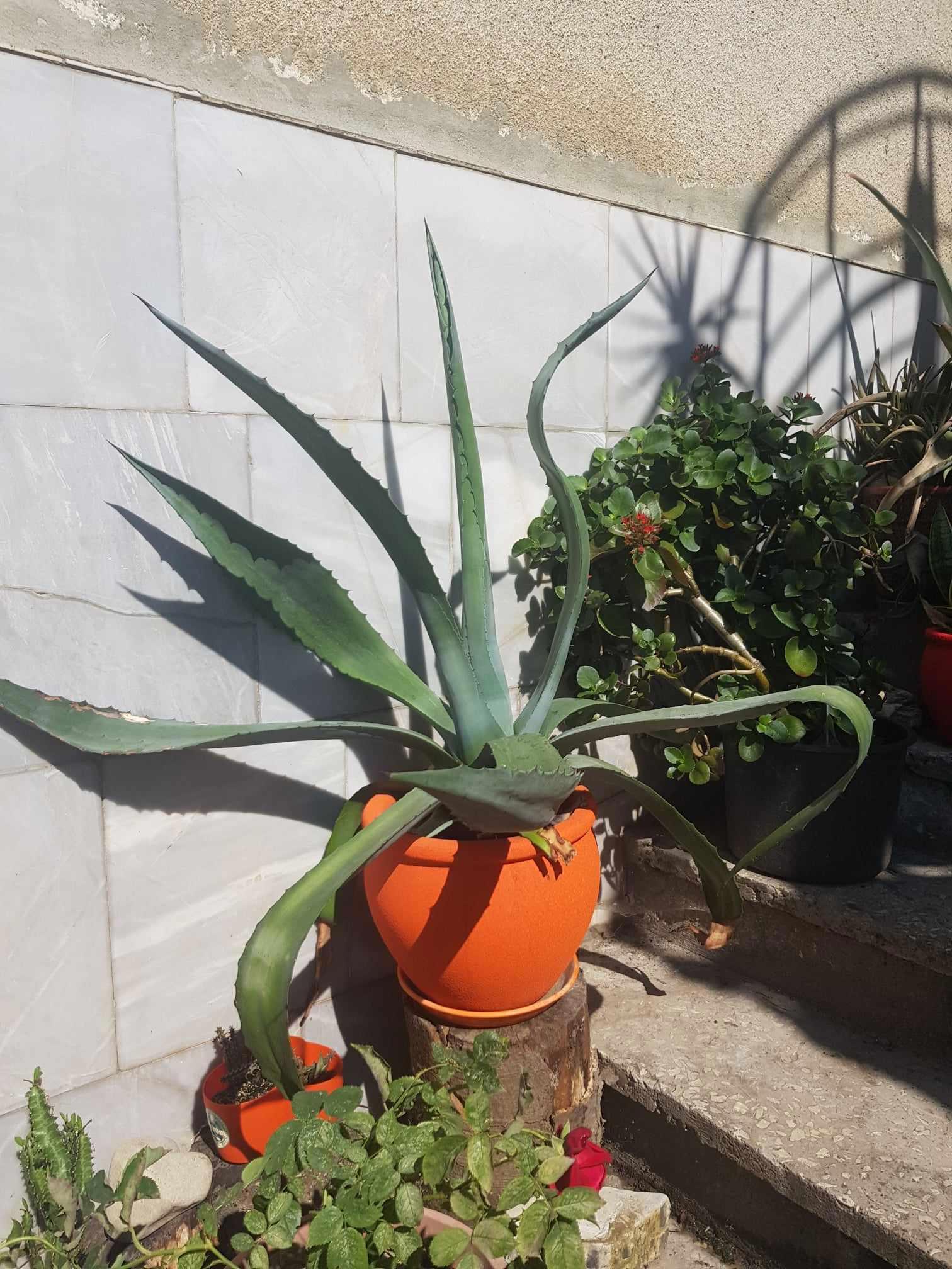 А это моя самая крупная агава, очень горжусь.  Вообще-то у меня уже штук двадцать этих агав, можно текильный заводик открывать,  но огромная -- только одна. Выносить и заносить -- целое дело, опасность травматизма