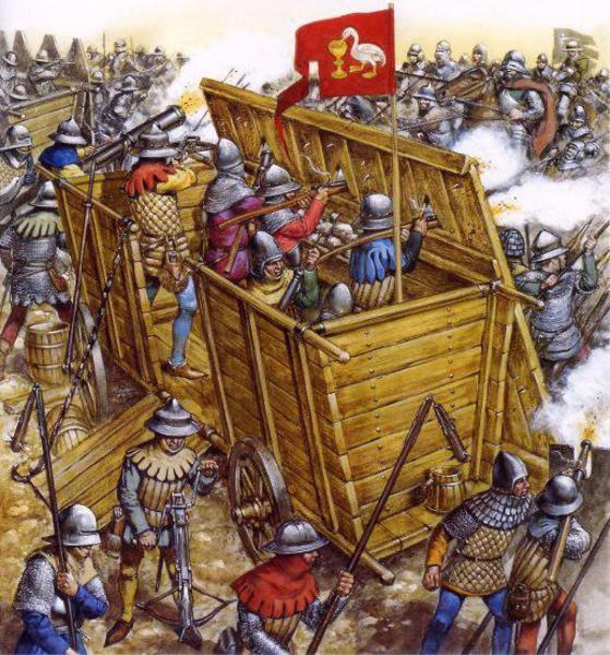 При этом вагенбурги - с размещением бойниц вне досягаемости врага внятно показывают, что то, что делали военные инженеры - было разумно - и не повалишь и не заскочишь и в бойницу не пырнешь саблей. Но про подвижность вагенбургов никто не писал - это жесткая контрукция, стена практически.