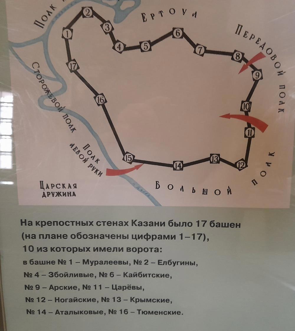 17 башен. 10 ворот, мосты перед которыми были в начале осады татарами сожжены.