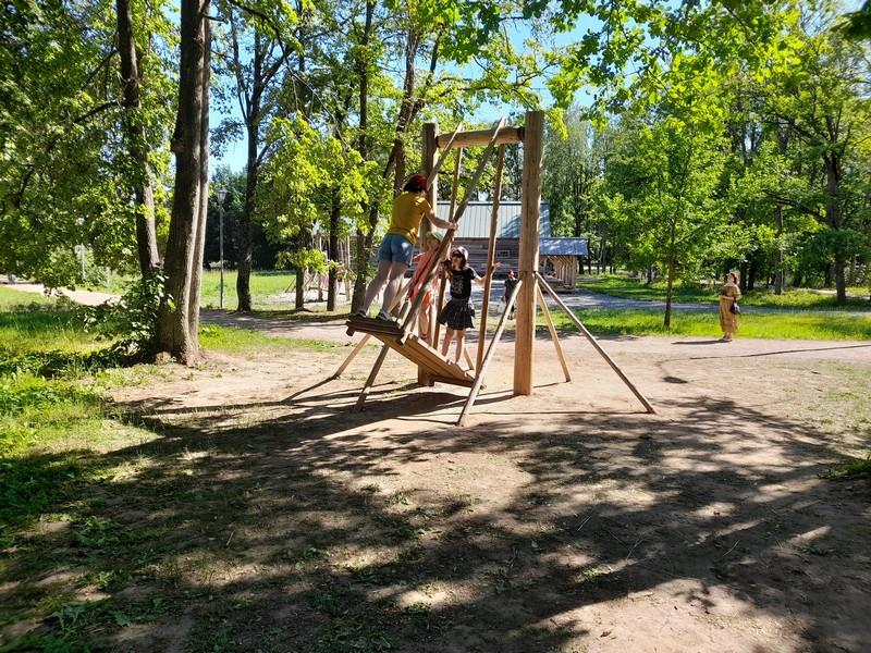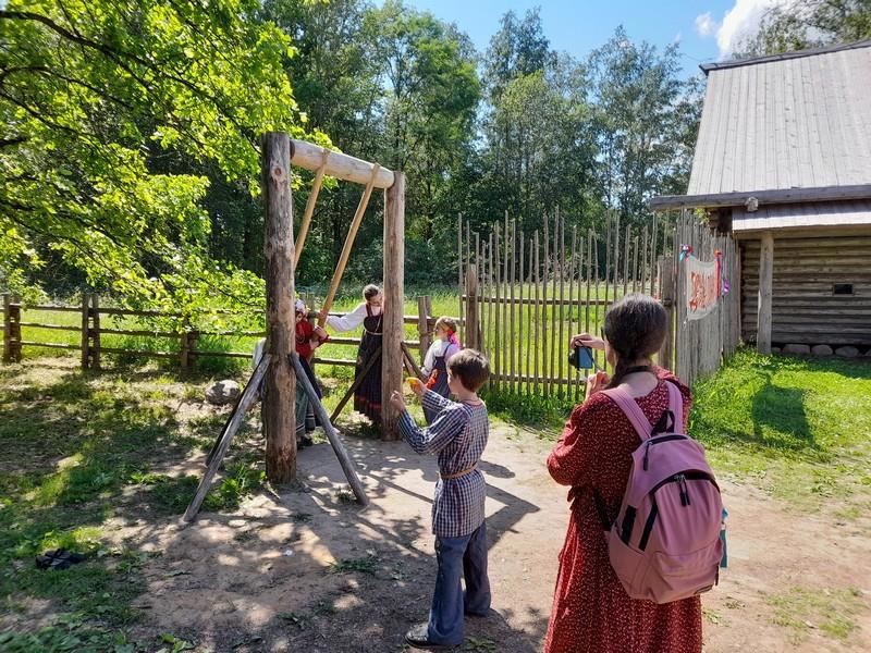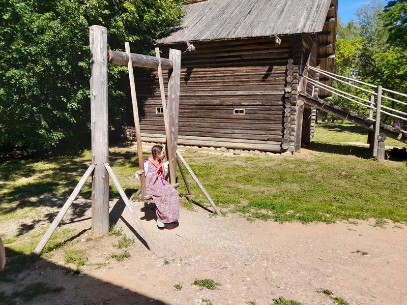 Качели навели на мысли, что в деревнях это был быстро делаемый и привычный аттракцион. В принципе и гвоздей не надо. Тут как раз система крепежа видна хорошо.