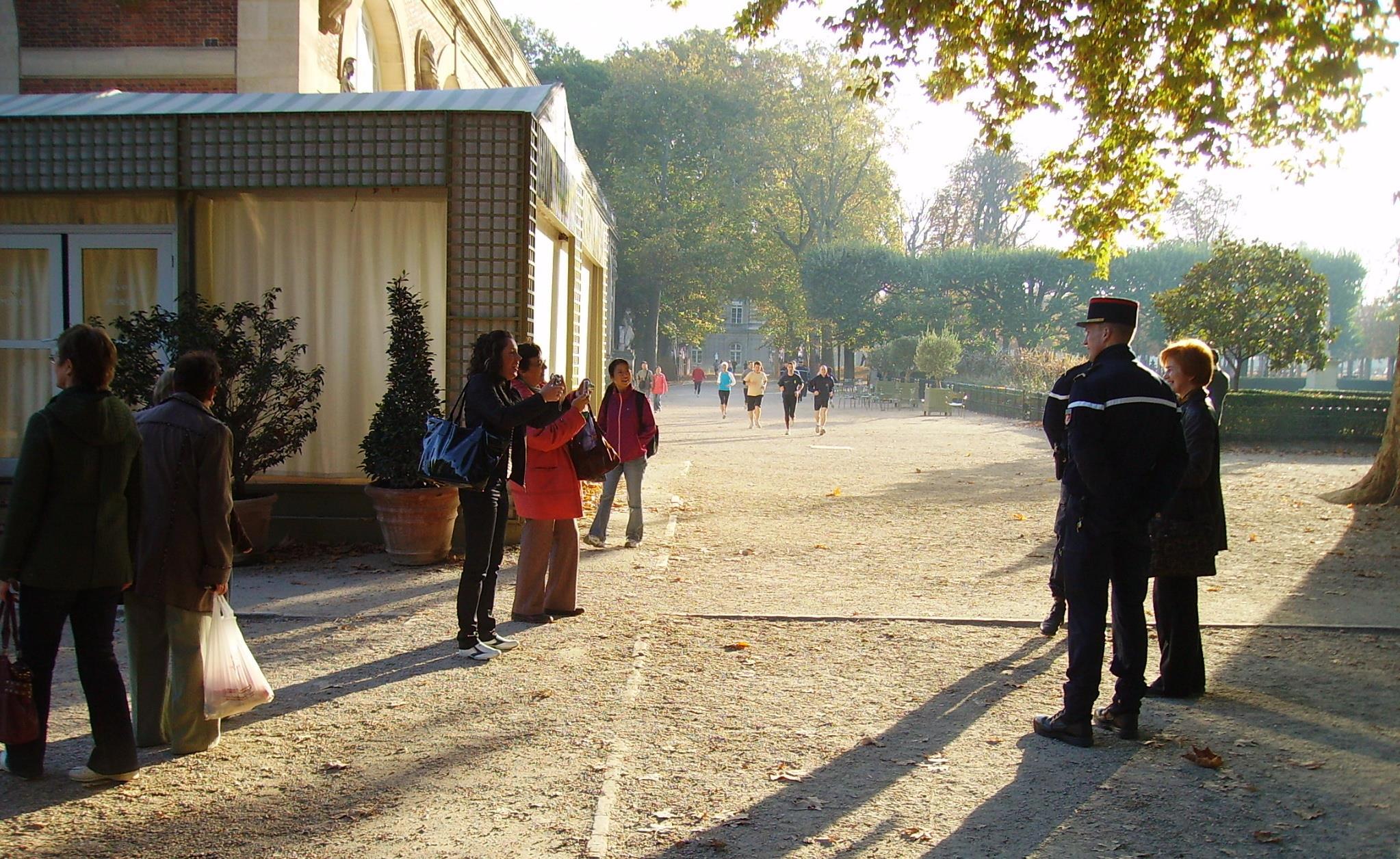Неторопливо гуляя по саду – было часов девять утра – наши девушки вдруг набросились на проходивших мимо полицейских – попросились с ним сфотографироваться. Те не оказали.