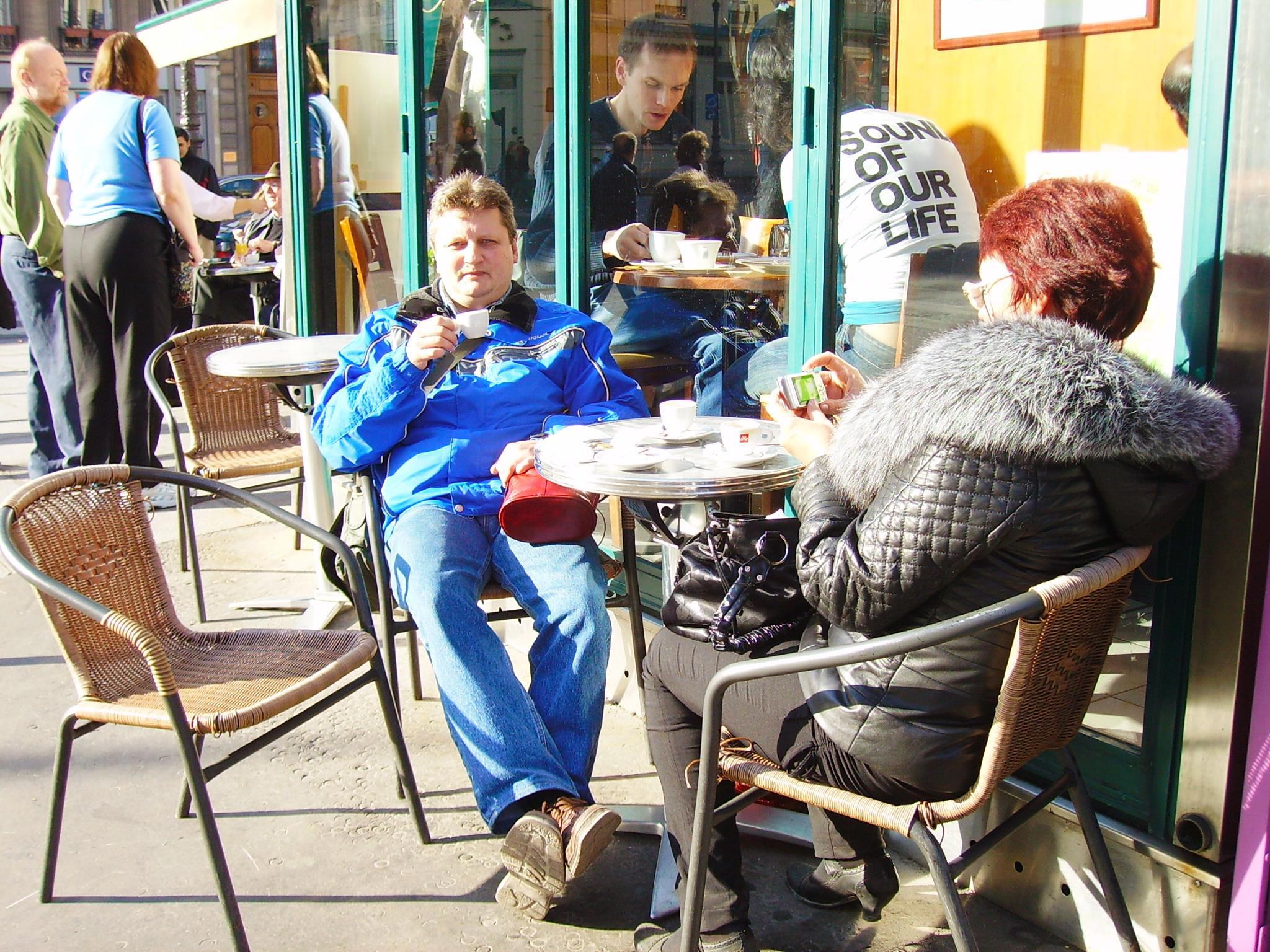 Осмотрев Пантеон, уселись на террасе ближайшего кафе – попить кофе за два евро. Чашечка маленькая, остывает быстро… Попили. Деньги оставили тут же, на блюдечке…