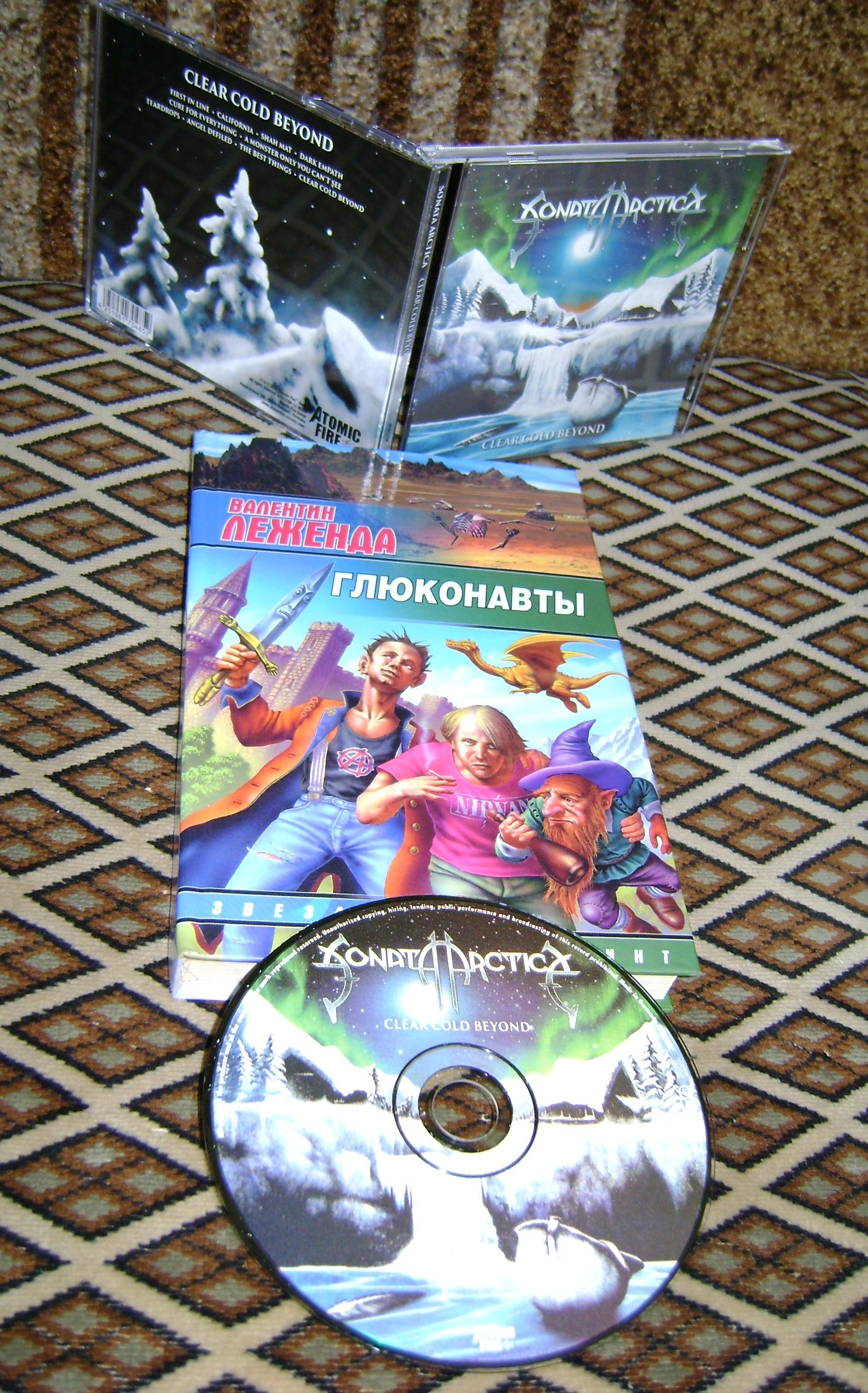 А вот сам приобретённый диск на фоне моей книги про хэви-метал «Глюконавты». Кто ещё не приобщился к данному уникальному для АТ и совершенно нестандартному труду милости просим. Роман есть в ленте моих произведений. Скромно приглашаю всех неравнодушных к тяжёлой музыке и чёрному юмору к чтению.