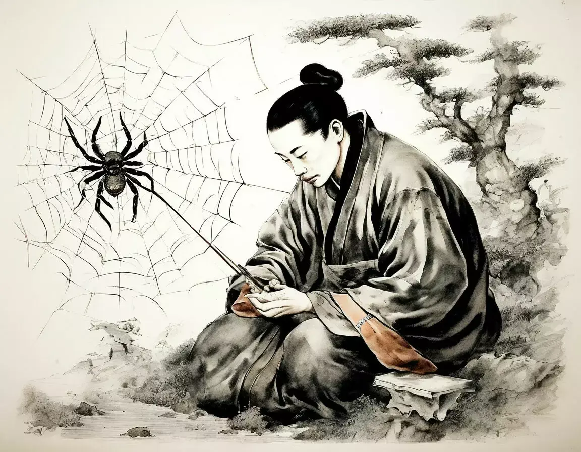 Министр Жень вместо цикады держал в своём кабинете паука. В минуты отдохновения от государственных забот, он любил наблюдать за тем, как его любимец ткёт свою паутину, и размышлять о своих интригах...