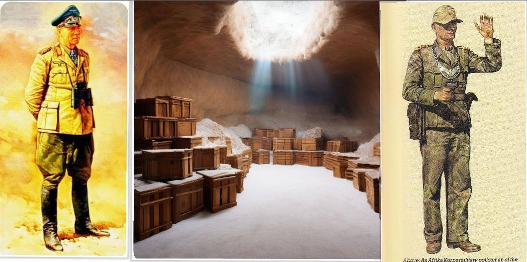 Дед похожий на Хемингуэя и нервного вида тип с кольтом Хай Пауэр, похожий на особиста, но без стального блеска в глазах. И наш очкарик в тройке. Два молодых компаньеро с М-1, еще как-то тянули на боевые единицы. Мы путешествовали почти трое суток и наконец нашли ход который явно забирал вверх и попали в огромный грот, впрочем со следами приложения человеческих рук и самое главное в каменном полу (не солевом) был колодец, в который откуда-то с потолка капала вода. Моток парашютной стропы был у каждого, как и брезентовое ведро имелось в наличии. Так что водой мы были теперь обеспечены. Со светом тоже было более менее… у нас были японские фонарики с запасом батареек, а у объектов была керосиновая лампа и канистра керосина. Но самое главное в пещере хаотично валялись деревянные ящики с клеймом в виде пальмы со свастикой – эмблемы корпуса Роммеля. И еще чувствовалась воздушная тяга вверх, то есть мы явно продвигались в нужном направлении и могли вдобавок разжечь костёр. Что интересно, в части ящиках были упаковки консервированного хлеба из рациона Вермахта, датированные 1942-м годом. В паре ящиков был шнапс, в остальных консервы, естественно вздутые. Консервы Митрич запретил даже трогать, шнапс добавляли в колодезную воду для дезинфекции, а хлеб пошел в охотку и был вполне съедобен. После то ли обеда, то ли ужина и небольшого отдыха мы стали исследовать стены пещеры на предмет замаскированных проходов, в чем вельми преуспели. Сначала мы обнаружили кладку, за которой было помещение с целым арсеналом из карабинов Маузера, пулеметов МГ-34 (прозванных союзниками Шпандау), МП-40 (прозванных красноармейцами Шмайсерами) и прочих арийских карамультуков и боеприпасов к ним. Причем и оружие и патроны оказались вполне годными).
