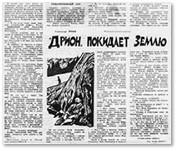 «Дрион покидает Землю» А. Ломма, он тогда печатался в «Пионерской Правде». О языке и почерке даже вспоминать не хочется, это был ужас-ужас.