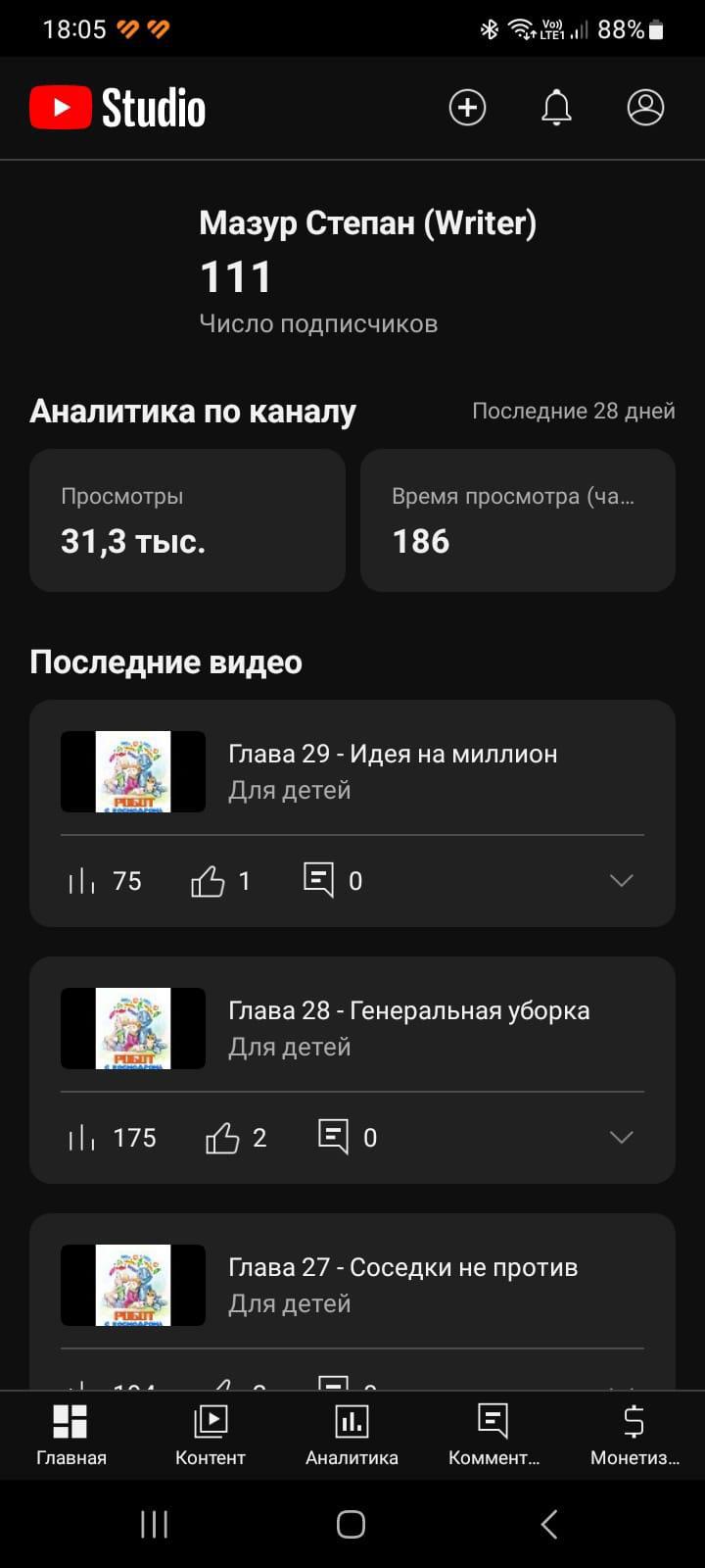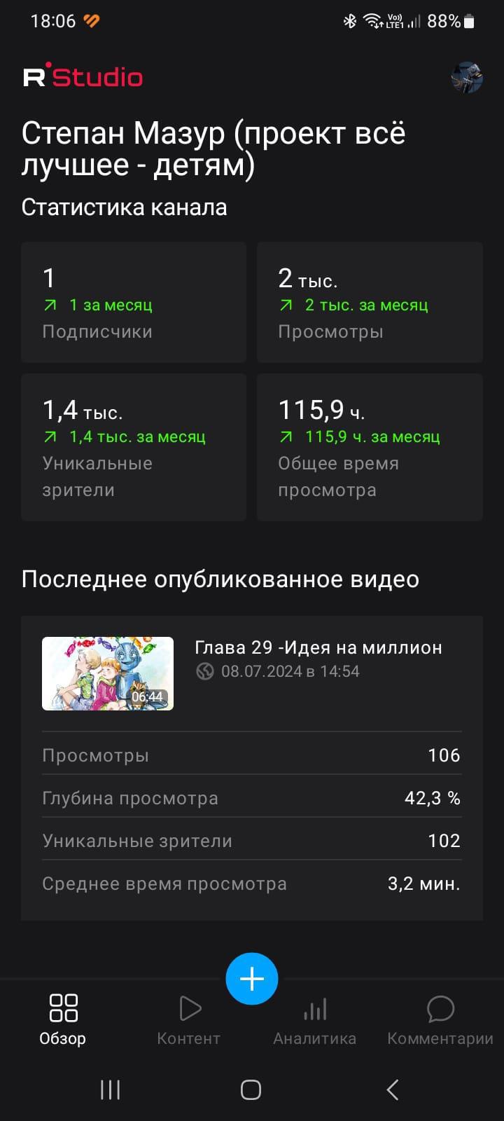 Попутно Стёпка Рябов так же завел канал и на рутубе. (и почти сразу получил верификацию). С подписчиками там правда не густо. (Нетолько у меня, а вообще), да и показатели по просмотрам гораздо скромнее - 2000 за неполные 2 недели.