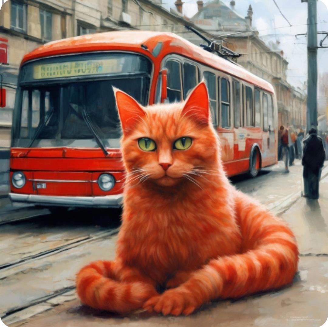 Однажды на рассвете он увидел здоровенного рыжего котяру разгуливающего по троллейбусным проводам (на тот момент товарищ был сравнительно трезв). А через неделю увидел похожего кота у байкеров. И у меня родилась идея стихотворения о коте влюбленном в троллейбусы