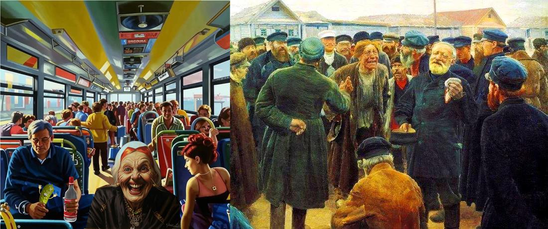 Я думаю, что всем кто хоть иногда пользуется Городским Транспортом известно, что это таки Микрокосм, где действуют свои правила и я бы сказал законы. А еще там существуют свои достаточно давно сложившиеся трибы и даже социальные сообщества. И кого там только нет...Например спецгруппа гнетикен-фрау демонстративно занимающих по два места, это данность которой нет внесхоластических объяснений. Ну, а борцы с собственной абстиненцией вносящие в салон перегарный раздрай, хотя иногда и забавный, знакомы я думаю всем... Помню еду в автобусе в часы пик, салон битком, я как старый танкист стою не держась за поручень, пружиня ногами толчки подвески, но сзади меня стояла мадама, которой было лениво держаться, но было вполне комфортно было падать при резких манипуляциях на Вашего покорного слугу. На третье ее падение мне это надоела и я элегантно отстранился, а мадама врезалась в тетку с мешком (тетки с мешками в свое время очень любили общественный транспорт). Мадама посчитав себя пострадавшей , заявила общественности, что все мужики невоспитанные скоты, на что благостно дремлющий поддатый мужичек громко ответил на это, сказав: "А все бабы *****".Но вот большой отряд любителей перфомансов на тему картины Коровина - "На миру", буквально зашкаливает и гитик там миллион. Эти леди и джентльмены, настолько стремятся к общественному признанию, что жаждут поделиться с вами всеми сторонами свой интимной и естественно общественной жизни, причем особо не заморачиваясь поводом. Например спросив у вас сколько времени и не дожидаясь ответа, на вас сразу вывалят поток информации, например про то что этот кобелина зять купил трусы в цветочек, из чего проистекает его кобелино-изменщикская сущность, или скажем перечисление всевозможных недугов , с параллельной попыткой демонстрации послеоперационных шрамов. И есть еще одна разновидность попутчиков, те кто обожает задавать вопросы окружающих в диапазоне, а какой это мол автобус (это уже когда уже двери закрылись), до сакраментального - А кто же убил Кеннеди ? Вот на такого я и нарвался...