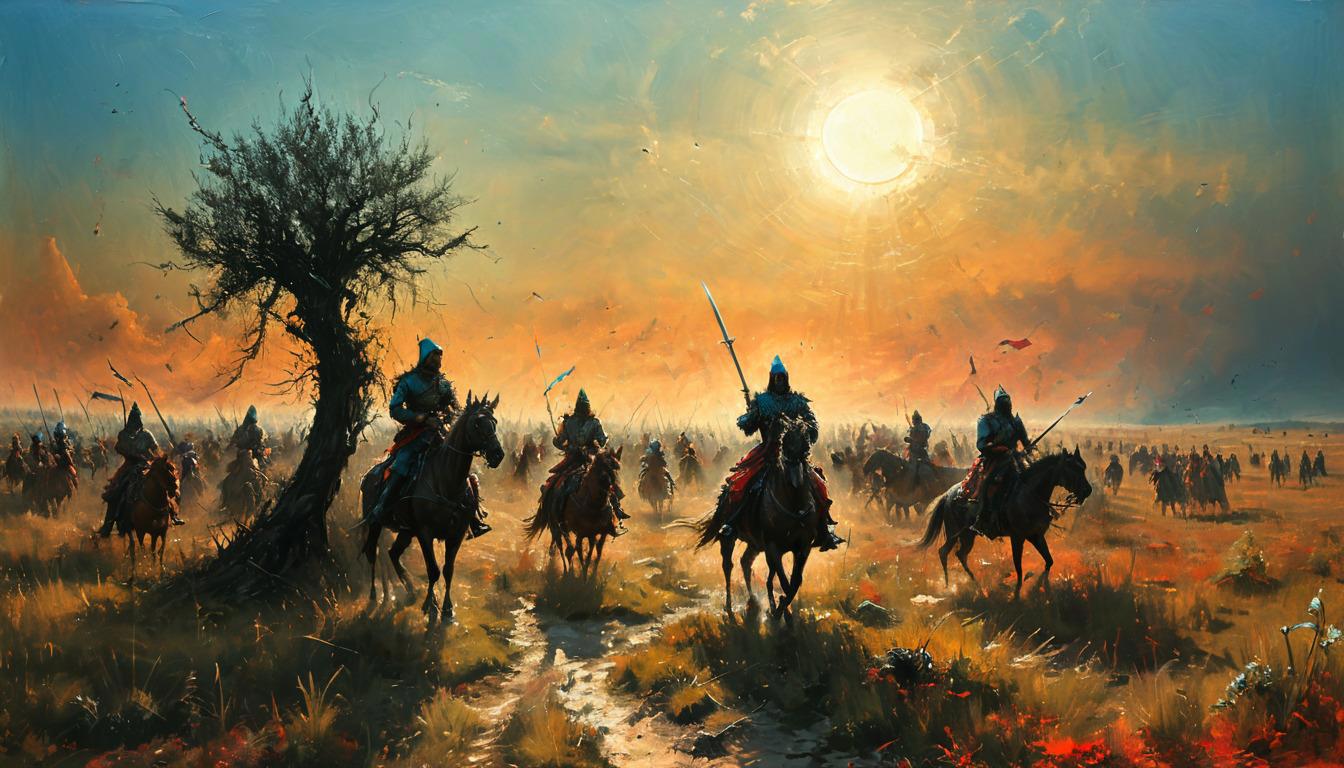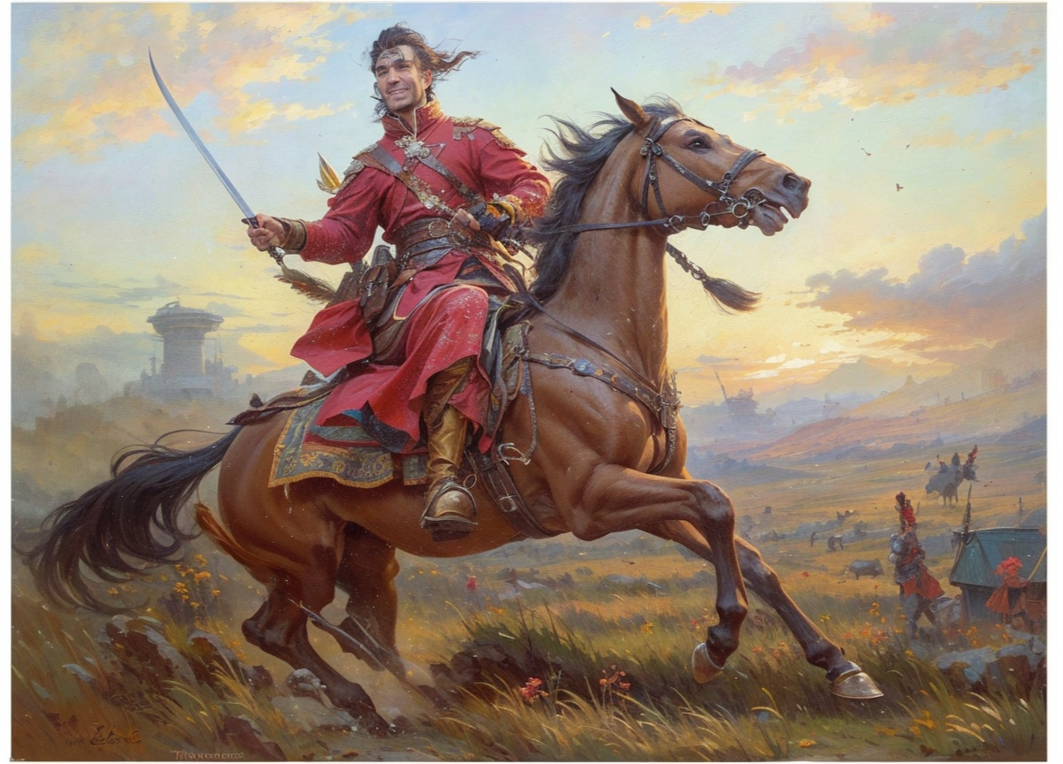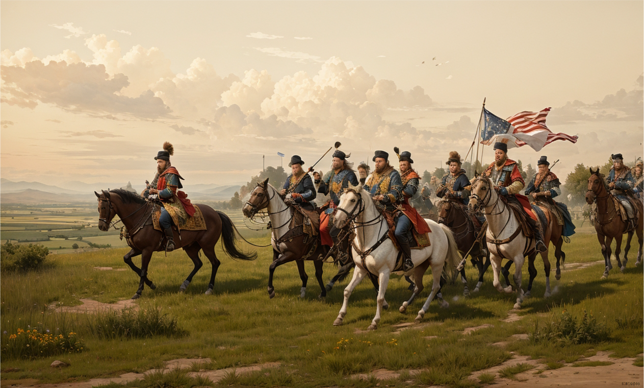А это свободолюбивые казачьи паны едут воювати. Говорите, прапор у них странный для 17 века? Так попуданцы жэ. Как один попуданцы. А бороды у кацапив сперли.