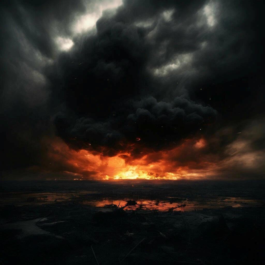 Рушились  горы, трескались  мощные тела  скал, одаряя  землю остриями  своих  зубьев и  погребая  под собой  леса и города. Реки, озера, ручьи  и пруды  испарялись  на глазах. Земля  разрывалась  на части, покрывалась  трещинами, раскалывалась, извергая  из  недр своих  фонтан  огненных брызг. Небо  было  черное как  сама  ночь. Его затянули  темные  тучи, но дождя  не   было. Лишь гром  и  молния разрывали  небо  и сотрясали  и  без того  неспокойную  землю. Воцарившаяся повсюду паника постепенно угасала…