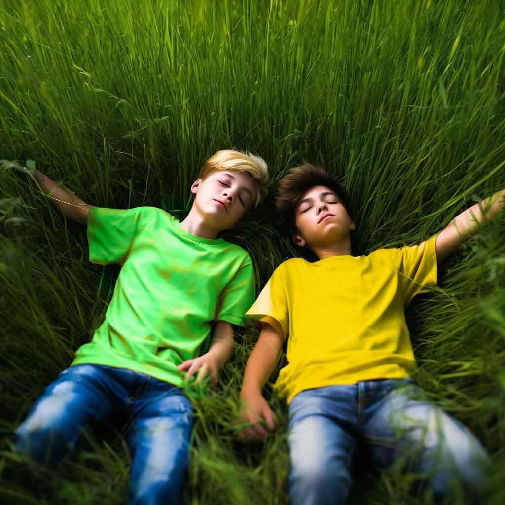 Очнулись ребята на мягкой зеленой траве. Ласково пригревало весеннее  солнце, воздух был свежим и чистым, над головами беззаботно щебетали  птицы.