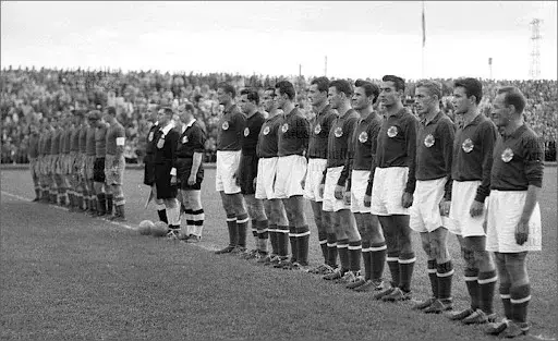 Сегодня у футбольной сборной СССР матч с Югославией. Мы в предыдущем матче обыграли Болгарию в дополнительное время 2:1, а "юги" вынесли сборную Индии 10:1. Несмотря на потепление советско-югославских отношений, наши матчи с этой сборной проходят в острой бескомпромиссной борьбе. Сборная СССР выходит на поле в следующем составе: Л. Иванов - Кузнецов, Крижевский, Башакин, Крутиков - Колобков, Нетто - Симонян, Бобров, Сальников, Трофимов. Половина полевых игроков сборной ещё не до конца освоила масловскую схему 4-2-4, а уж про согласованный прессинг и говорить было нечего. Но, тем не менее, состав у нас был весьма боевой, впрочем как и у наших соперников. В воротах у Югославии голкипер Беара(читаю на нимбе прозвище - Большой Влад), в защите опытный жёсткий Станкович, молодой Црнкович(которого прозвали Казановой за множество романов с женщинами), высоченный Хорват; в центре поля - невысокий и шустрый Чайковски и яркий плеймейкер Бошков; нападение очень грозное - пасующий Огнянов, забивающие Митич и Бобек(34 гола в последних 35 играх чемпионата и Кубка Югославии), супертехничный голеадор Вукас и молодой Зебец, которого я помнил в 70-е тренером немецких Баварии, Гамбурга и Боруссии Д. Короче, соперники что надо.
