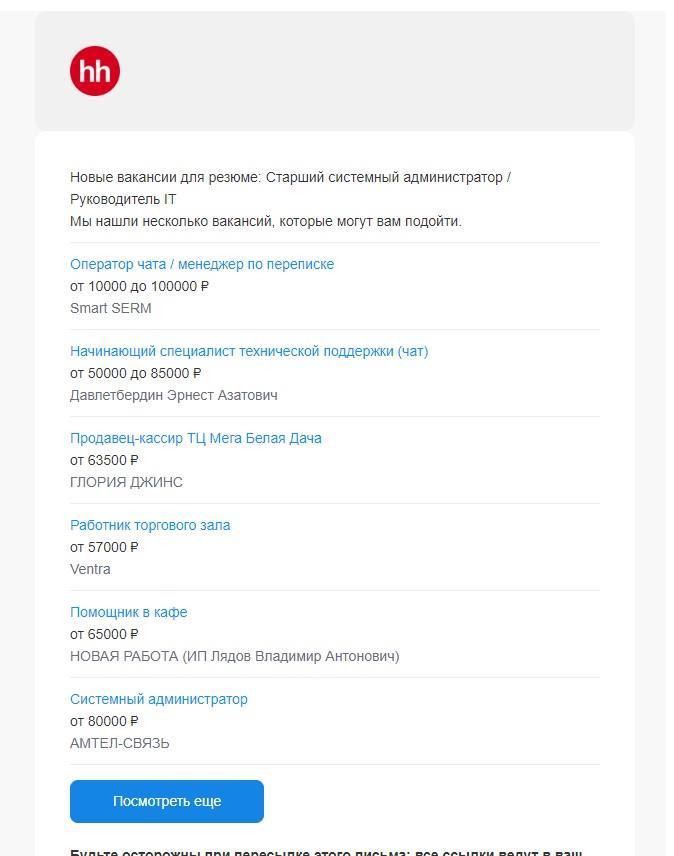 Продолжаю получать вакансии по профессии руководитель АйТи или старший системный администратор. Спасибо, что не уборщик на этот раз. Помощником в кафе поинтереснее