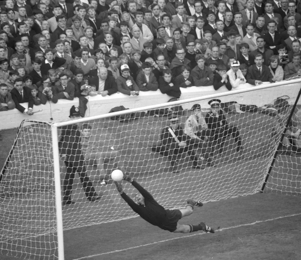 До перерыва шла вязкая борьба на всех участках поля. Но, тут в нашей штрафной случилось несчастье. Мяч попал в руку Крутикову. Пенальти. Вызвался бить лучший бомбардир турнира Кочиш. Он долго устанавливал круглого на точку, словно гипнотизируя. Яшин снял кепку и бросил её на ленточку. Сам же раскинул руки и встал по центру ворот. Разбег. Удар. Яшин, как мне показалось, начал валиться вправо ещё до удара. Мяч, хлопнув о перчатку, изменил направление и разминулся со штангой. Кочиш в отчаянье натянул майку на голову. Стадион заревел, увидев футбольное чудо.