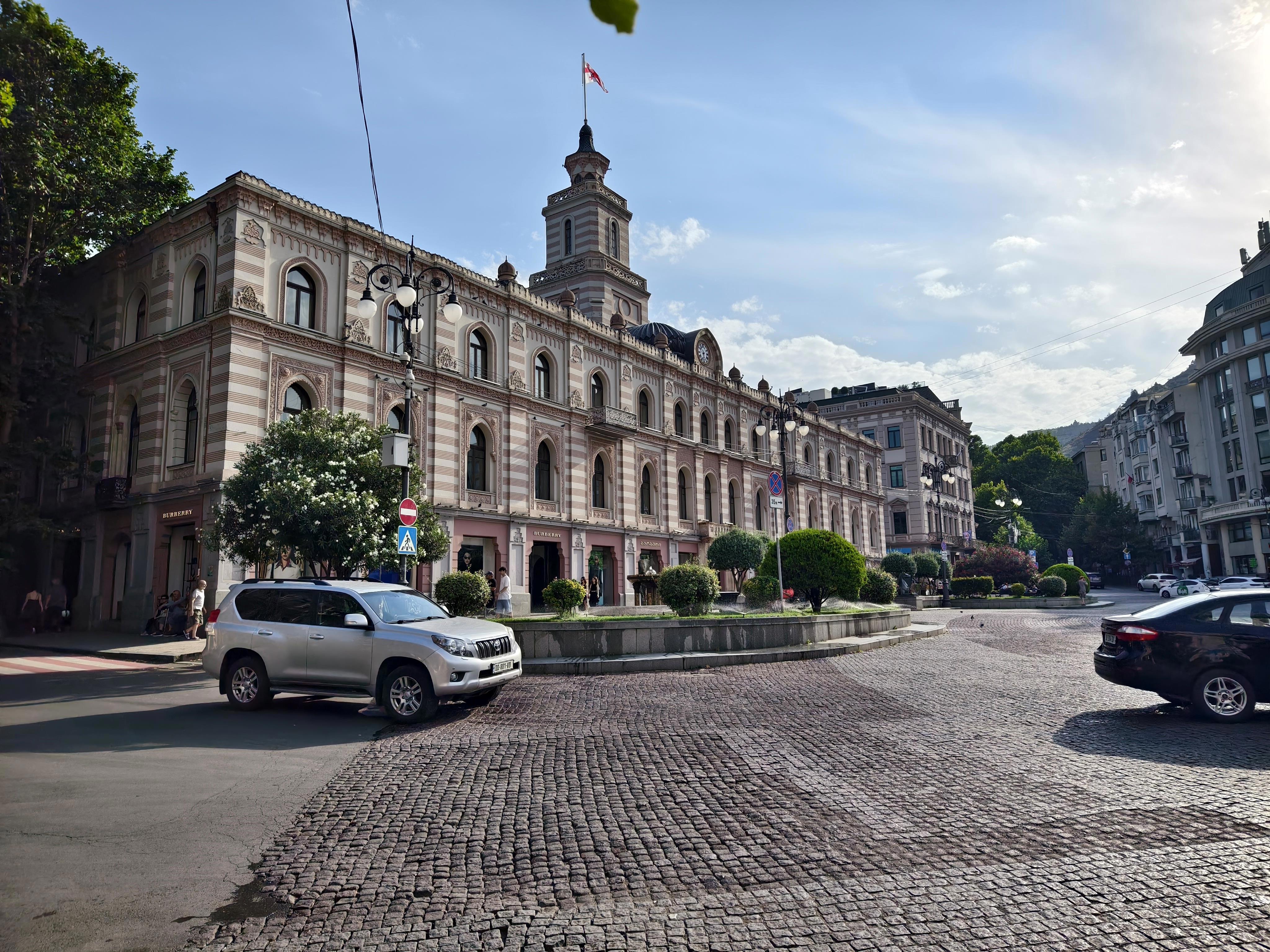 Тут у меня возникает первая проблема, к которой я был не готов: я забыл посмотреть как оплачивать парковки в Тбилиси и надо ли это делать. Паркуемся недалеко от площади Свободы и идём к терминалу. Там я нахожу кнопку, где чётко указано, что она для иностранных транспортных средств, но смущает плата - 4 лари (130 рублей) за неделю. Никакого чека автомат не выдаёт и оповещение не приходит, хотя я ввожу свой грузинский номер, следуя вопросам системы.