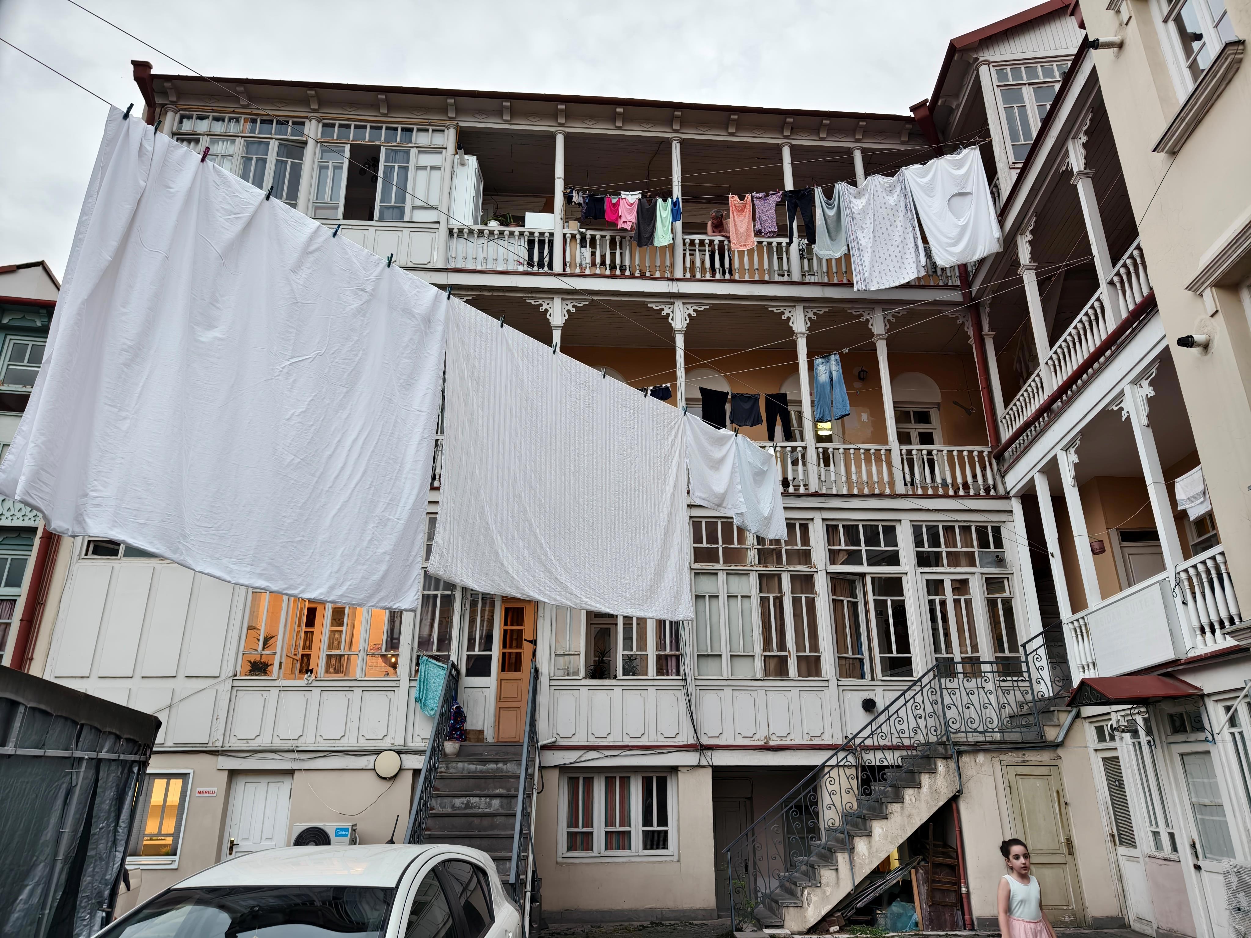 Удаётся заглянуть внутрь двора, где живут местные обычные люди.