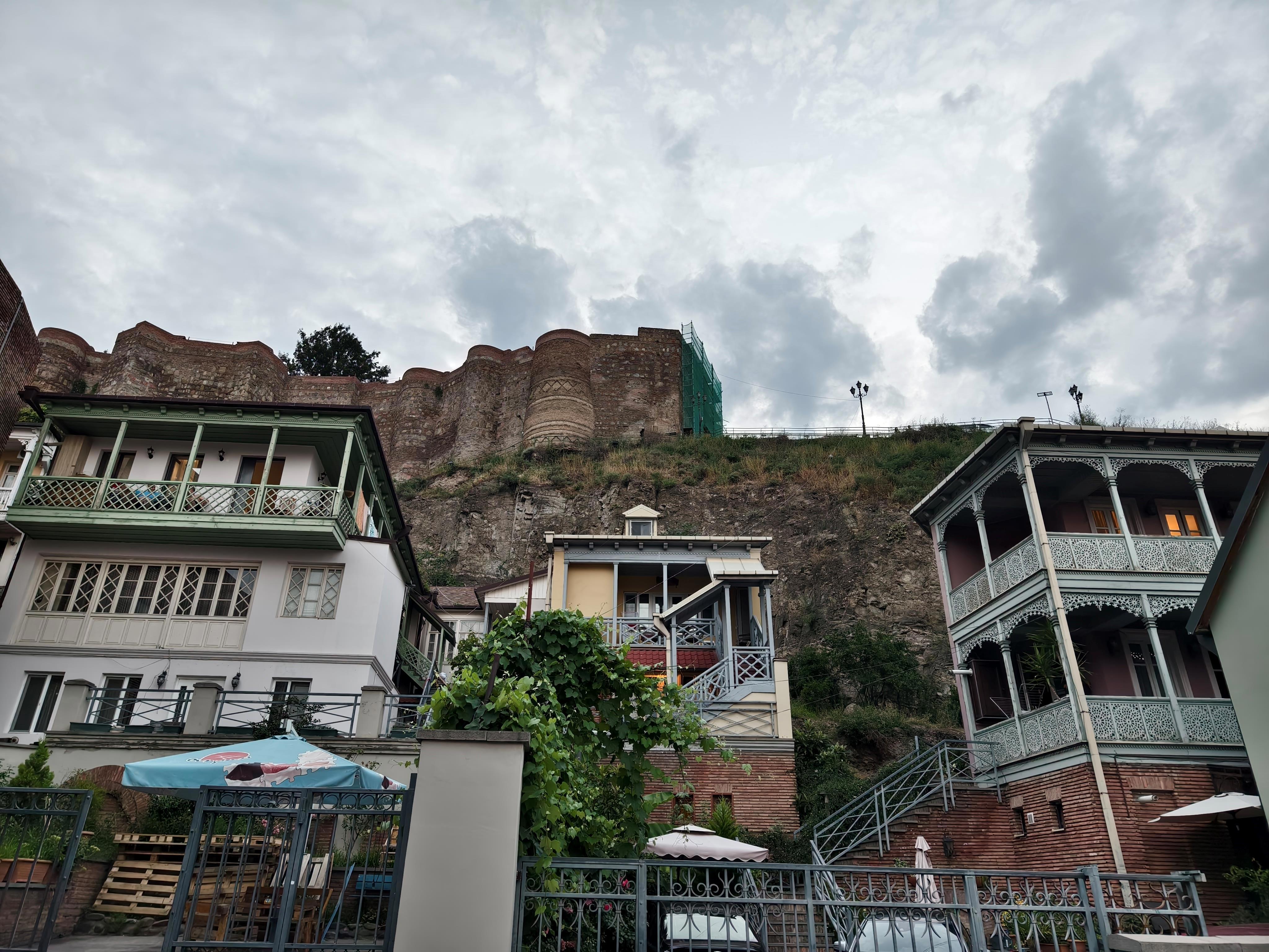 Я веду всех к горе, на которой стоит памятник Мать Грузия. Мы идём узкими переулками и смотрим по сторонам.