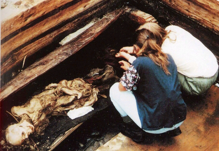 Вероятно, соплеменники Принцессы были хорошо осведомлены о свойствах вечной мерзлоты и использовали их в своем погребальном обряде. После помещения умершего в могильную яму, она быстро заполнялась грунтовыми водами, которые, застывая, превращались в «ледяную линзу», где сохранялось тело умершего. Возможно, лед выступал в качестве символа смерти в мифологических представлениях пазырыкцев. При этом перед захоронением соплеменники подвергали тела умерших мумификации, удаляя внутренние органы, наполняя тело смесью овечьей шерсти и растений, а также высушивая его. Разрезы на теле зашивались конским волосом.