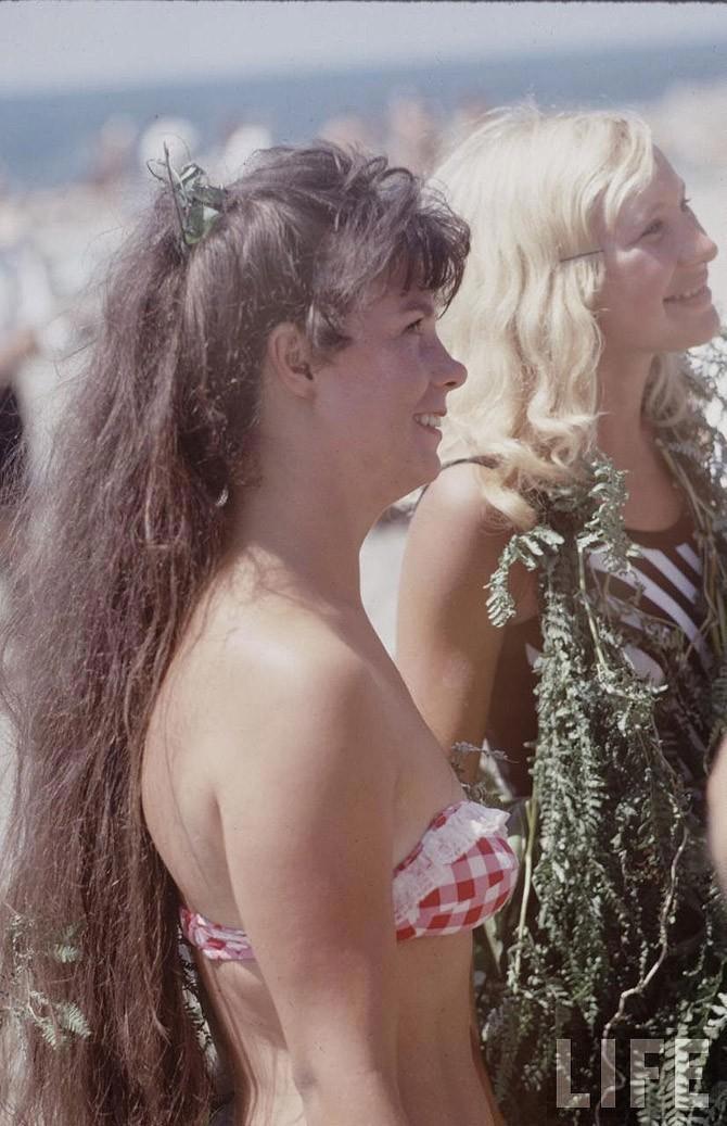 А уж на дальнем пляже, когда разделась… Прямо, как в песенке, что крутили в клубе на танцах  - «Иси-биси, тини уини… пти бикини» - как-то так… «Маленькое желтое бикини в горошек»! Только у нее - не желтое, а зеленое. Зато цвет такой приятный, яркий. А материал-то – чистый нейлон! Что и говорить – ГДР!