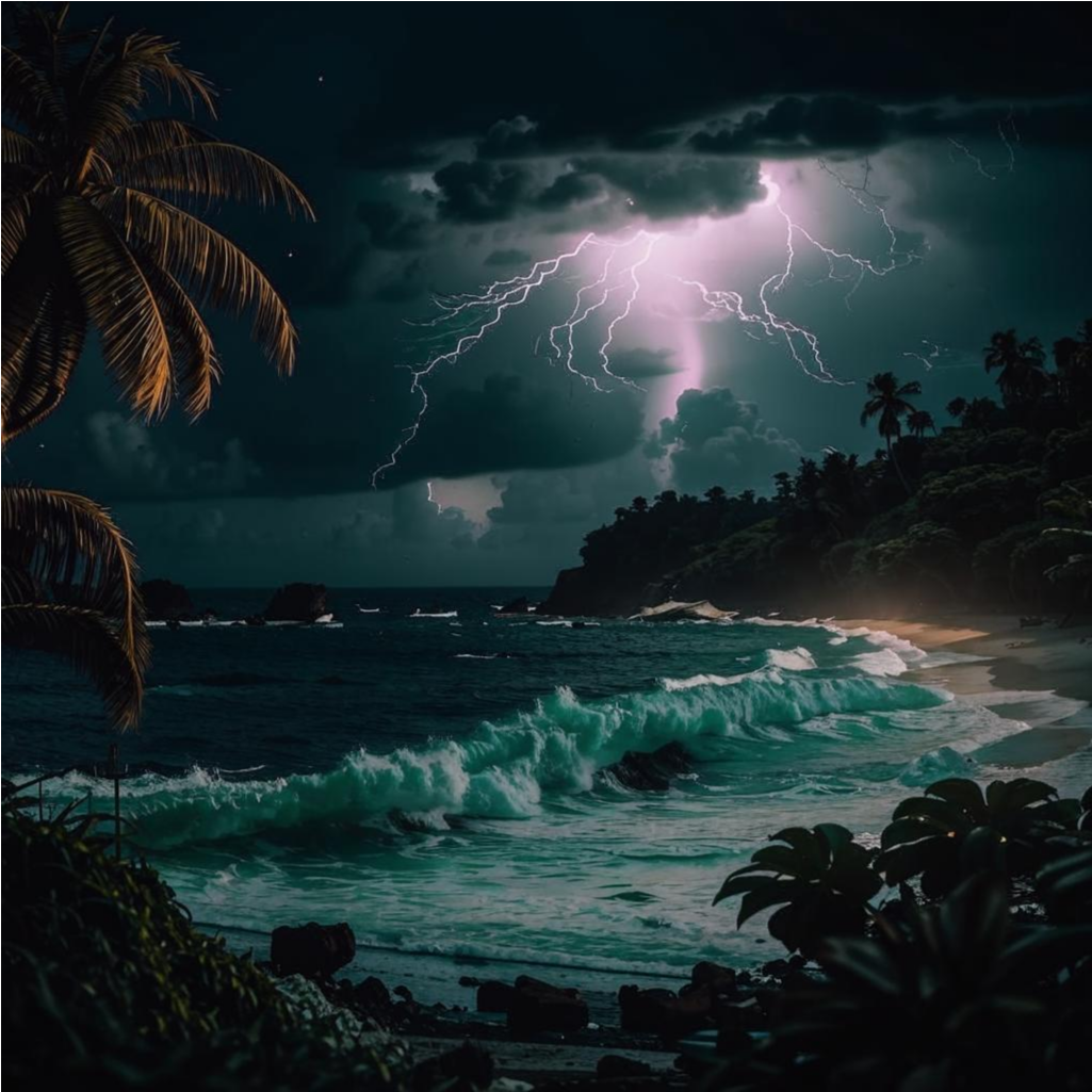А затем увидел… С неба. Она спускалась с черного неба впереди. Прямо к земле. Огромная воронка. Хобот. Одну из пальм вырвало с корнем, закрутило и швырнуло в пролив. Ствол пролетел у нас над головами и скрылся в пенной пучине.