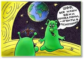 Автор: Олег ПалекСидят два мужика на холме с бутылкой водки. Рядом опускается космический корабль, из него выходит мужик и говорит: «Я инопланетянин!». Мужики наливают ему. Тот выпивает и снова: «Я инопланетянин!». Они еще наливают. Тот выпивает: «Я инопланетянин! Скоро на вашу Землю будет вторжение!». Один мужик другому: «Так, инопланетянину больше не наливать».