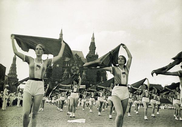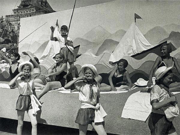 Реклама солнечных ванн и чистки зубов на московской демонстрации.