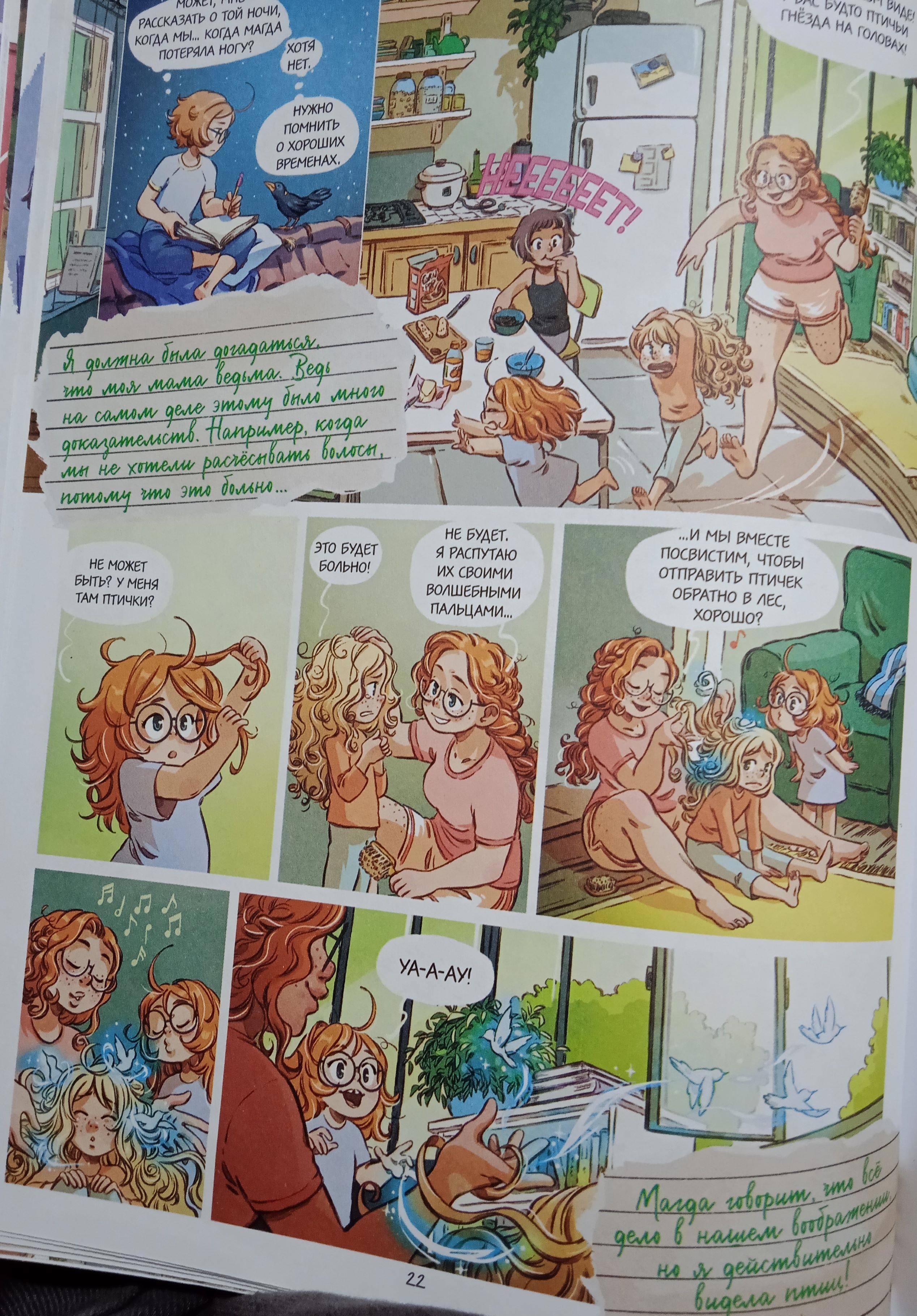 Кстати да, весьма серьёзные темы в комиксе есть. Средняя сестра потеряла в пожаре ногу, и то, как это влияет на подростка, и как это воспринимают окружающие, раскрывается довольно глубоко.
