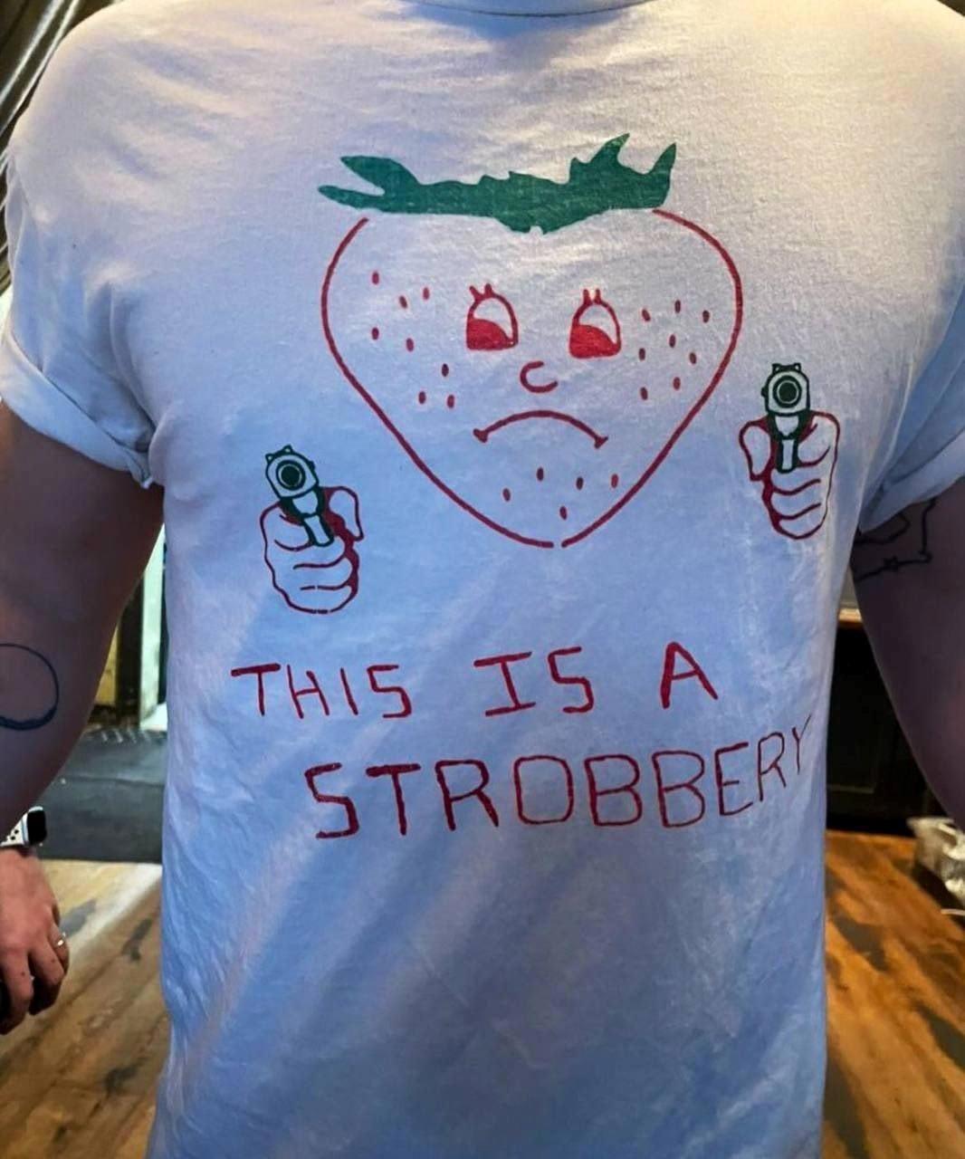 Strobbery произносится как strawberry= клубника, robbery = ограбление