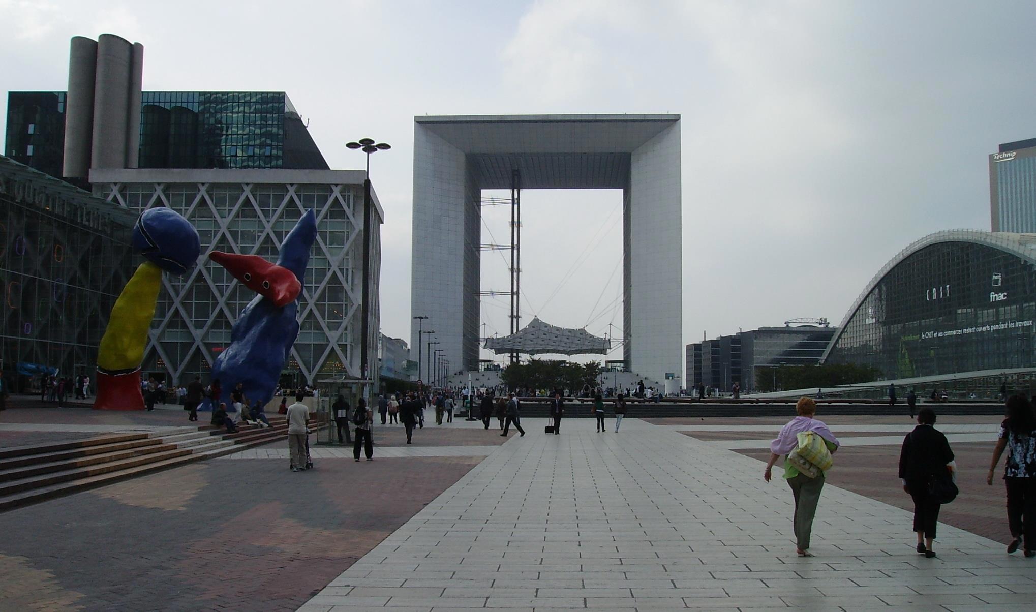 Кругом модернистские скульптуры, простор – весь транспорт под землю убран. Ну, и Гранд Арш, конечно – «Большая арка» с подвешенным к ней «облаком»…