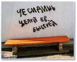 Ну хоть не то, что раньше писали на заборах: слово из трех букв. А еще популярно было писать на стенках туалета. Тут можно было узнать, кто имбецил, кто проститутка, уточнить политическую ситуацию в стране и взаимоотношения народов, ее населяющих. Хотя политические высказывания были редки — можно нарваться на неприятности. Да и не интересовала политика подростков мужского пола — основных «писателей». Им бы со своей бурлящей сексуальностью разобраться. Чаще писали ближе к местам раздражителей этой сексуальности, т.е. в подъездах, где жили девушки.