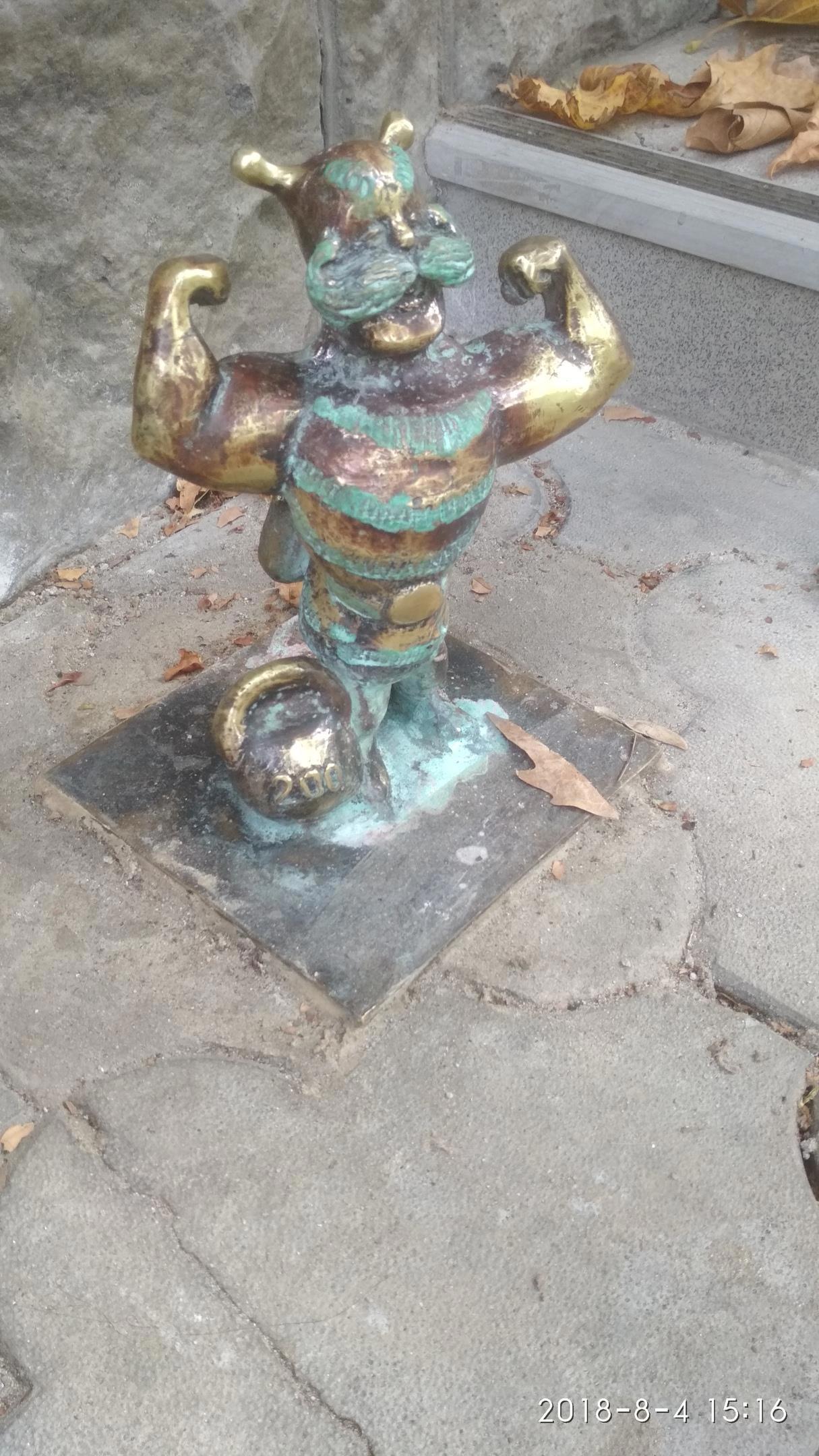 Возле магазина Спорттовары, что на ул. Севастопольская, долгое время стоял "Силач". Но сейчас его перенесли совсем в центр. Уж слишком часто бедного Силача похищали варвары.