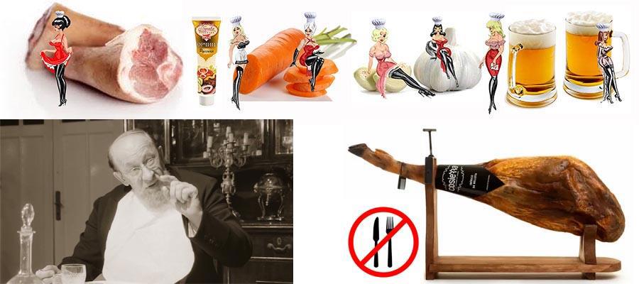 В одной компании зашел разговор о пропавших в связи санкциями, некоторых импортных продуктах и один наш приятель особенно сокрушался по Хамону, на что я попенял ему, сказав, что надо чтить классиков, которые устами профессора Преображенского учат нас, что закуска должна быть горячей. И вот еще что скажу...Что бы было еще вкуснее, готовить это блюдо должен только мужчина. Почему спросите вы? А потому что женщина будет готовить для вас, ну а вы то для себя!!!