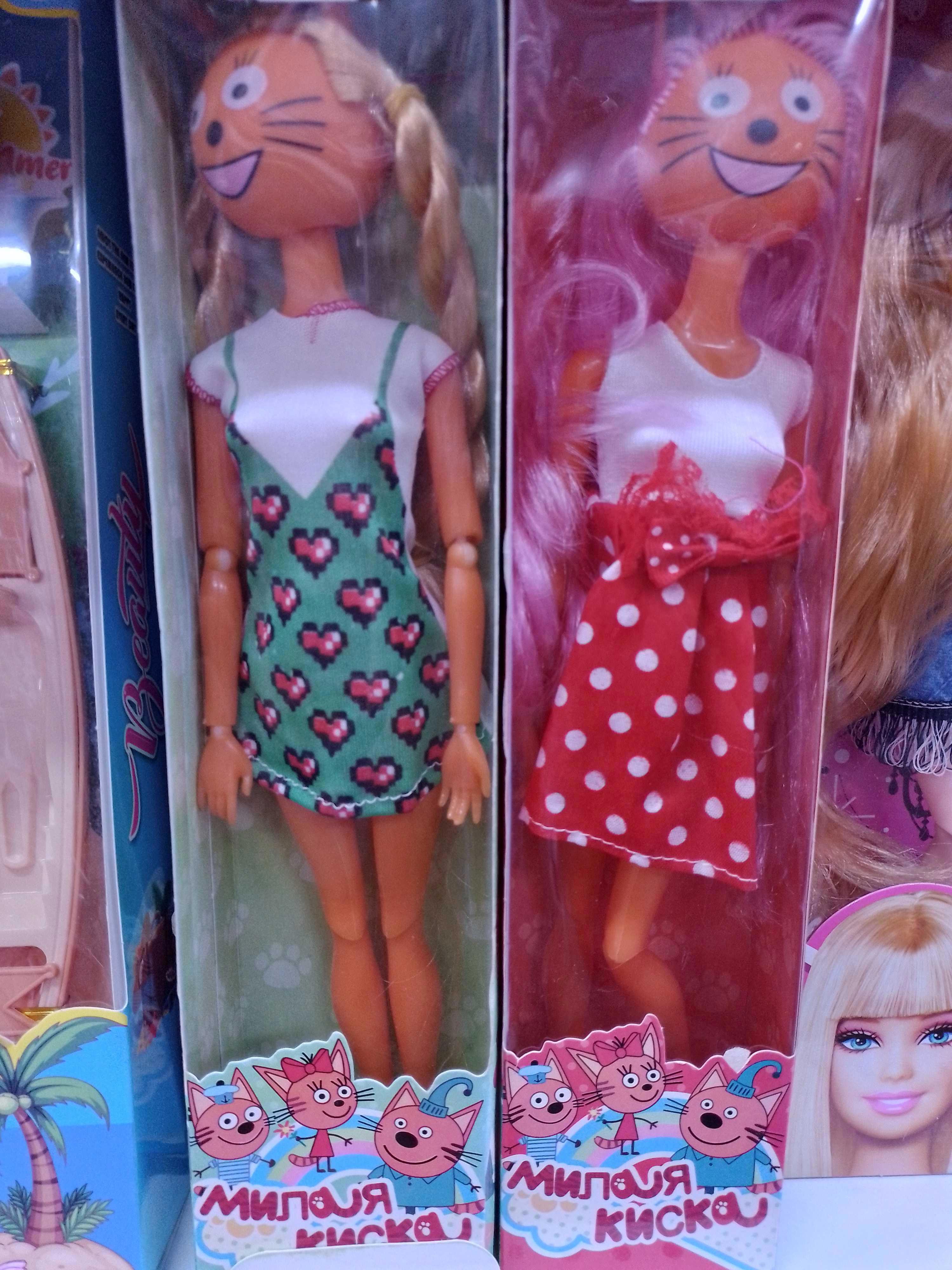 Ну и повеселю вас немного. Сегодня, как всегда в последний момент, ходили с дочкой за тетрадями и прочей канцелярией для школы. Но её всё ещё тянет к отделу игрушек, вернее ко всяким пластилинам и глитерам. А там рядом куклы стоят. И вот такая прелесть встретилась нам сегодня. Ржали с дочкой так, что на нас все косились.