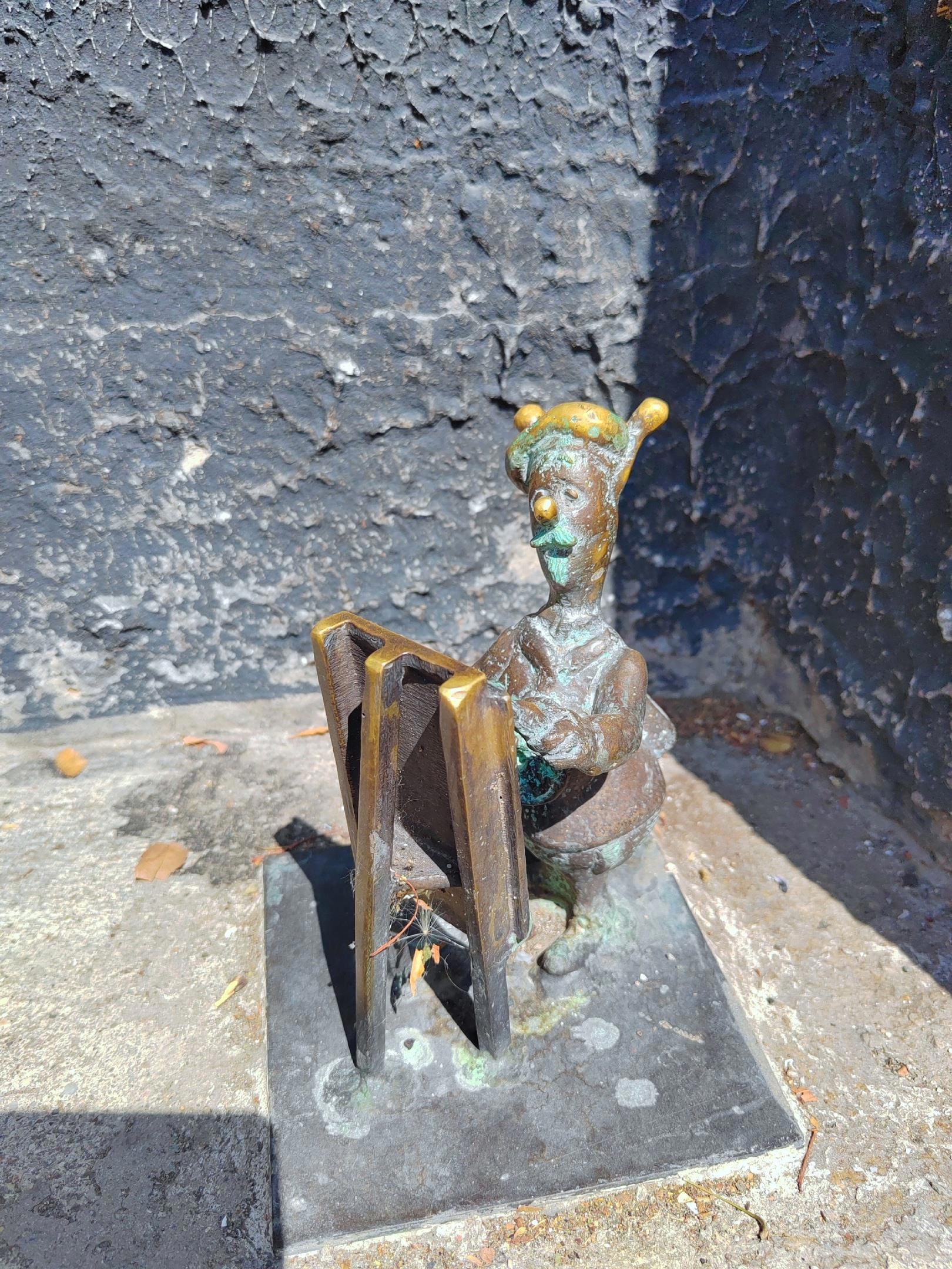 А на ул. Карла Маркса вас ждёт встреча с художником. Он вдохновенно смотрит на окружающий мир. А если вы заглянете в его холст, то увидите, что он уже успел изобразить на полотне милое солнышко.