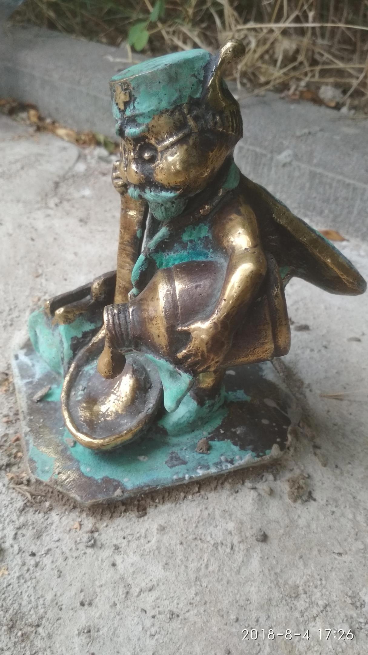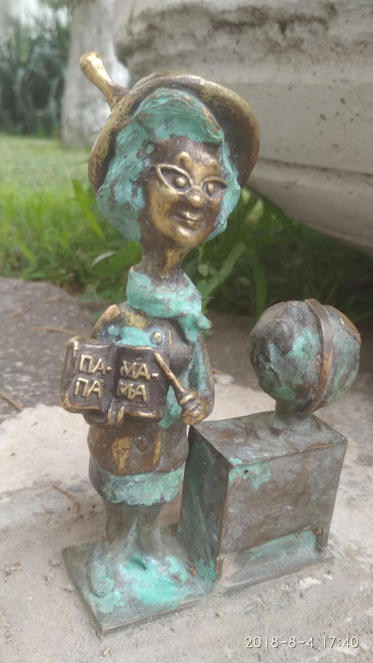 Эта скромная труженица стоит напротив Городского сада, возле памятника учителям и школьникам г. Симферополя, погибших от рук фашистов в Великую Отечественную Войну. Скульптура мила и хороша собой, но! Видимо именно потому, что учителя несут в мир зёрна знаний и воспитывают молодое поколение, наши недруги первое нападение совершили как раз на неё, на учительницу. И если Силача просто воровали для чьих-то коллекций, то маленькую учительницу лишили головы. Благодаря симферопольцам фигурка восстановлена, но было решено не убирать изувеченную пчёлку. Так они теперь и стоят: Памятный знак погибшим, покалеченная пчёлка (как символ борьбы с невежеством и злобой) и новая фигурка.