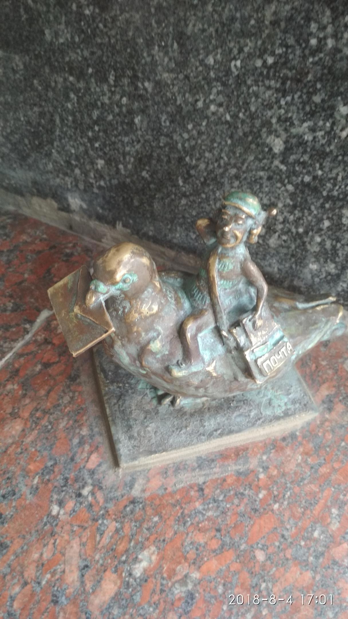 Возле Главпочтамта вы найдёте пчелу-почтальона. Конечно, у пчелы есть крылья, но голубями надёжней, да и писем можно взять больше! Так что, наш крымский почтальон, на голубе.