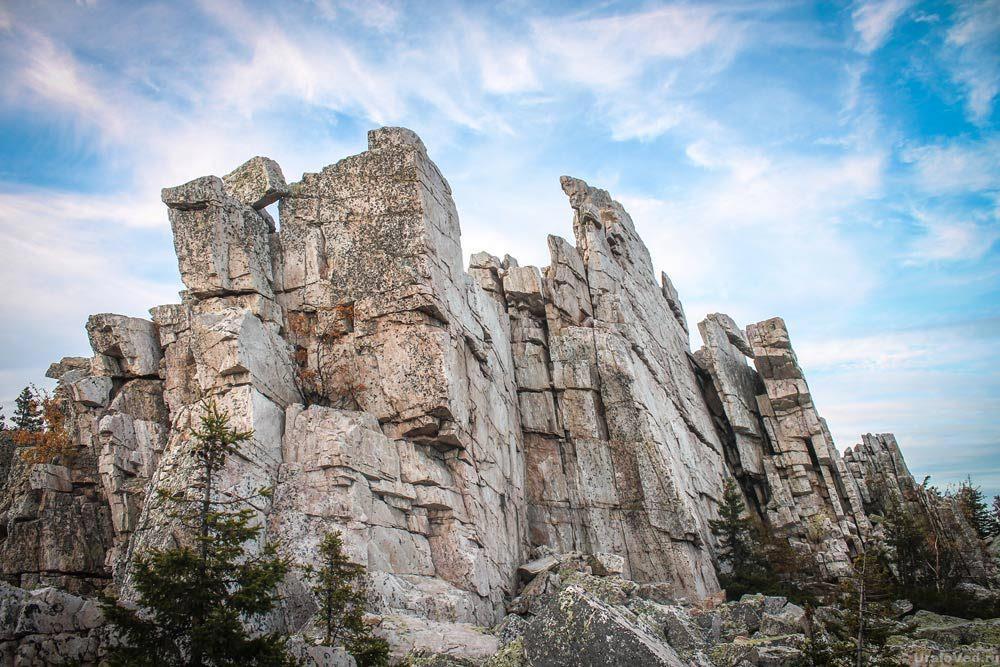 Но у меня работа такая, что не соскучишься, поэтому смотрю это я на эти «мегалиты» с холодной головой, забыв фантазию где-то в пути. Скажу так — есть на Урале места, которые на самом деле являются результатом труда рук человеческих (пока не доказано что похлестче), а эти скалы на искусственные постройки не похожи. Хотя готов согласиться — выглядят они настолько необычно, что так и тянет разглядеть в них древнюю кладку, выполненную натруженными руками каких-нибудь атлантов. Сами посмотрите на вот эту ровненькую стеночку: