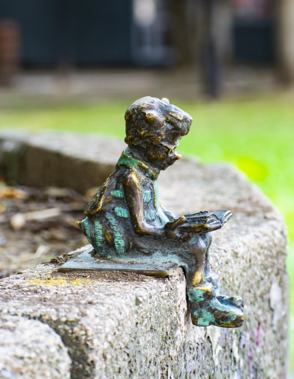 В сквере Дыбенко мы найдём маленькую фигурку читателя. Малышка так увлечена книгой, что не замечает никого вокруг.