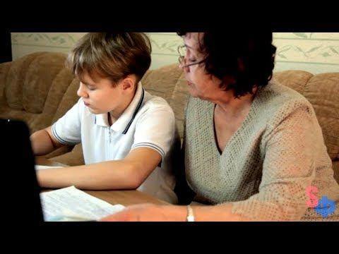 Мама и папа на работе, бабушка учит уроки с внуком.