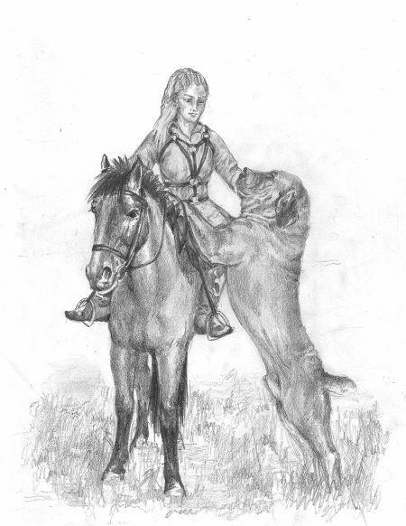 А вот Хальга - воительница сарства Самра - на своём коннике - знакомится с псом-гигантом Шафом: