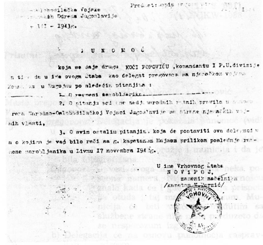 Немецкая сторона согласилась на обмен пленными, но потребовала прекратить акции на железнодорожной линии Белград-Загреб. Партизанская делегация требовала признать за НОАЮ статус воюющей стороны. Неприемлимые предложения завели переговоры в тупик, Джилас отправился в Верховный штаб за новыми инструкциями.