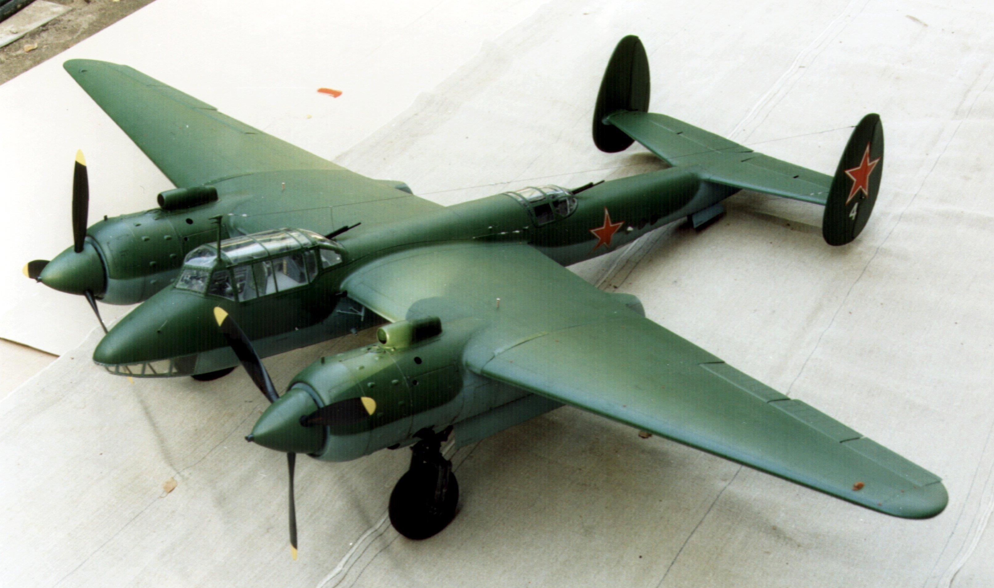Вот другая работа Николая. Советский бомбардировщик времён Отечественной войны. Как обычно, это вполне конкретная машина. Об этом говорят номера на деталях самолёта: