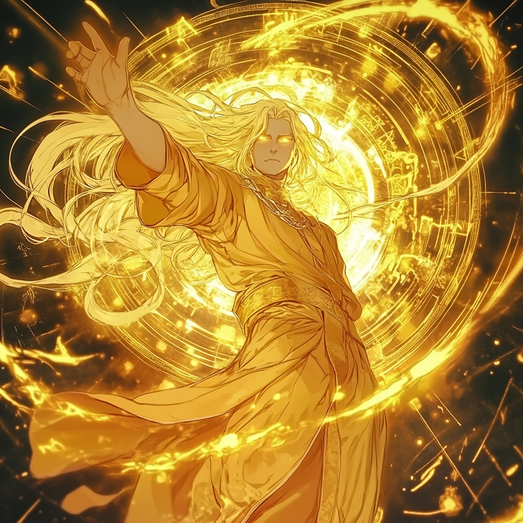 ...на лице Мин Ли стала появляться улыбка. Внезапно в его глазах вспыхнуло золотое пламя, и волосы также засияли золотистым светом. На одно мгновение все звуки в мире затихли, и внезапно само пространство исказилось и взрывная волна, исходящая из тела Мин Ли, разрушила целый остров, на котором он находился. Он оказался парящим в воздухе, и во все стороны от его тела исходило золотое свечение. По сравнению с этим светом весь прочий свет померк и казался тьмой. За спиной у него виднелся круг из золотого света, в который были вписаны ослепительные строки Небесного Дао. Круг вращался на огромной скорости, и исходящая от него пульсирующая энергия разрушала горы и искажала пространство. Тягота ауры Мин Ли была столь страшна, что давила как сотня гор. Мин Ли поднял руку, и опустил один палец вниз. Тут же огромная золотая молния появилась в небе, и, разделившись на четыре части, мгновенно пронзила четырёх стариков. И он них не осталось ни только пепла, ни даже осколка души...