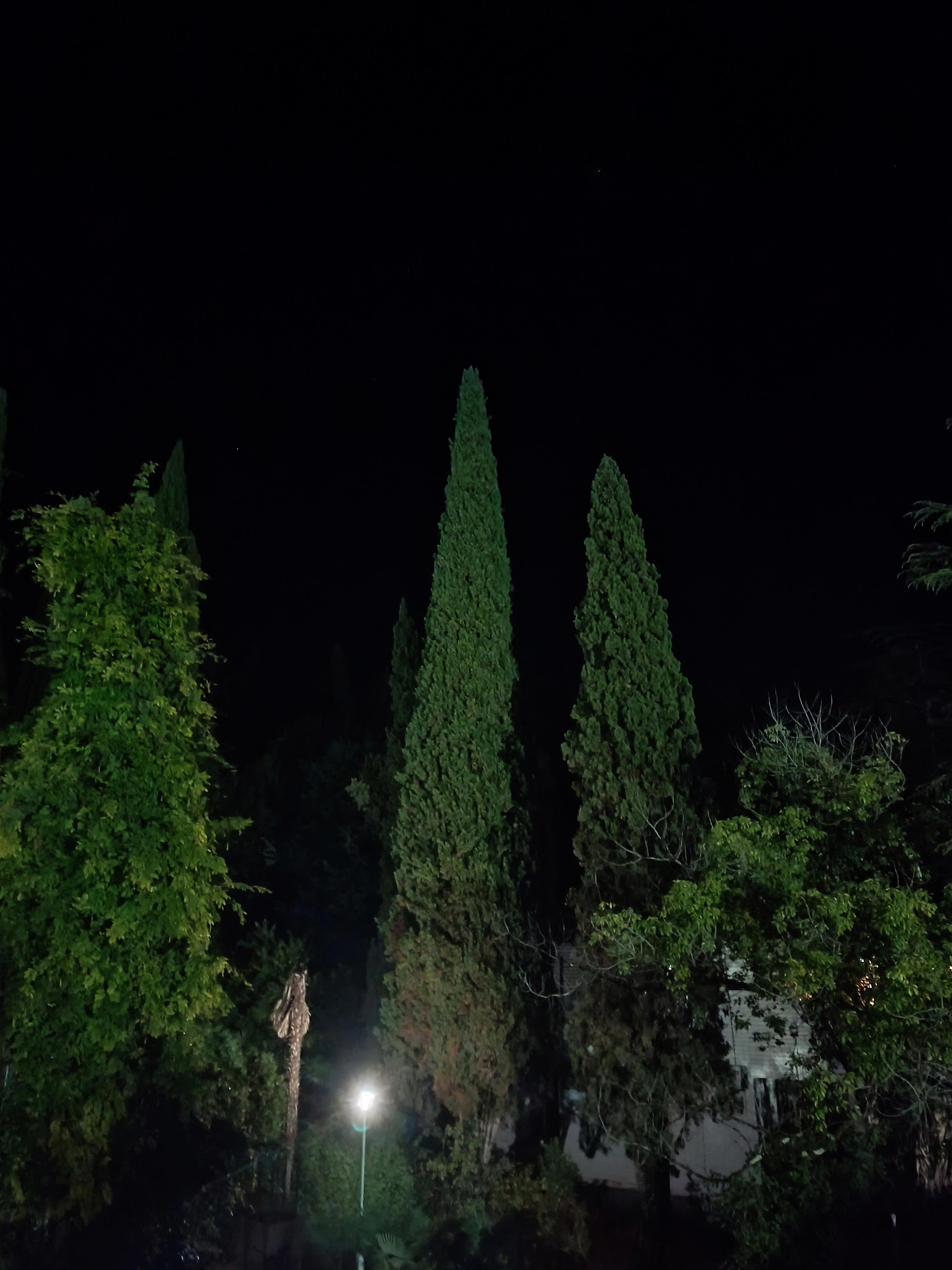 Гуляешь и напитываешься этим роскошным буйством зелени оттенённым бархатом ночи. Ночное море тоже великолепно, но мой телефон бессилен запечатлеть его красоту.