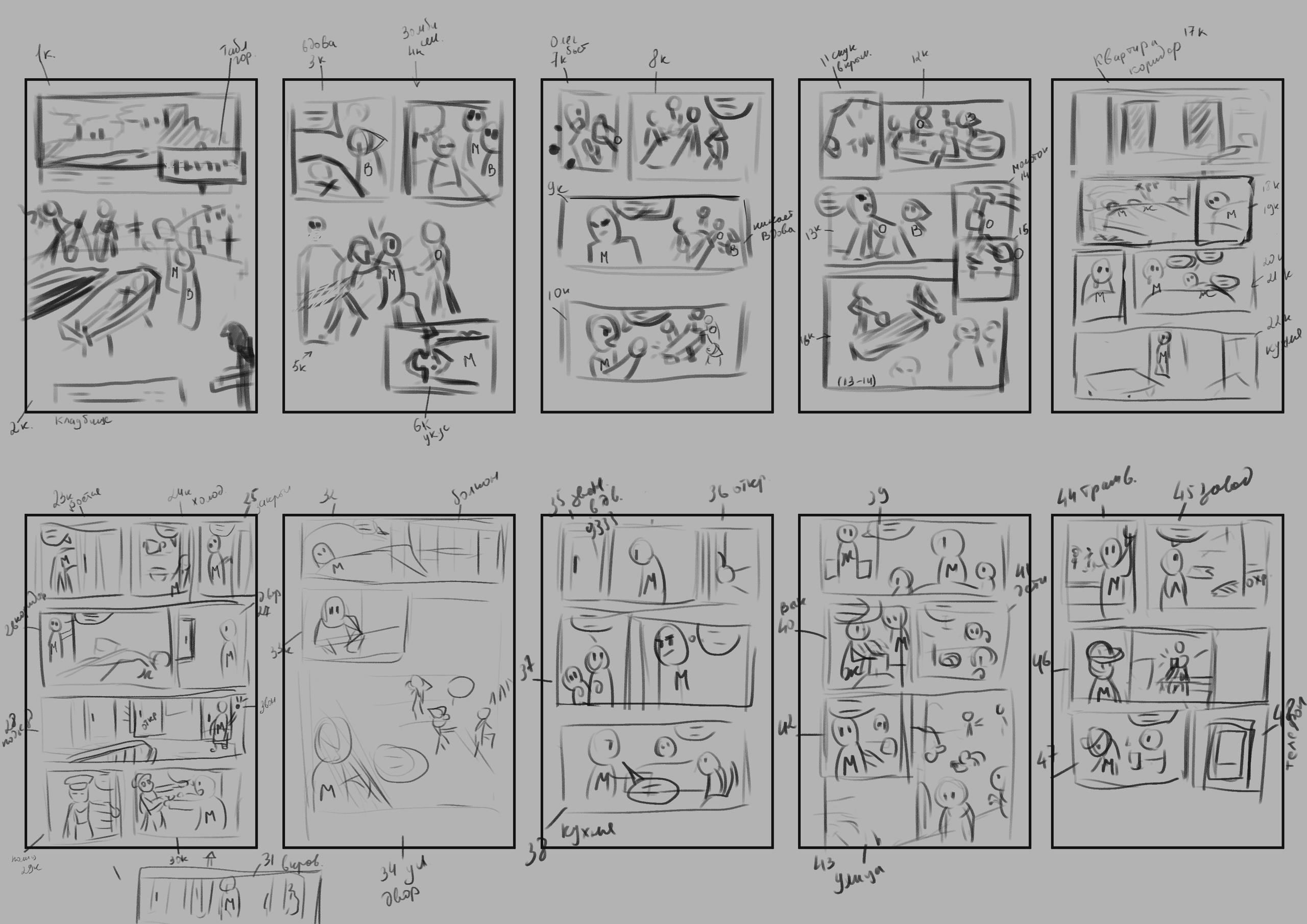 И, благодаря художнику Анне Выставкиной, комикс начал делать первые шаги. Пока это - раскадровка будущего комикса!