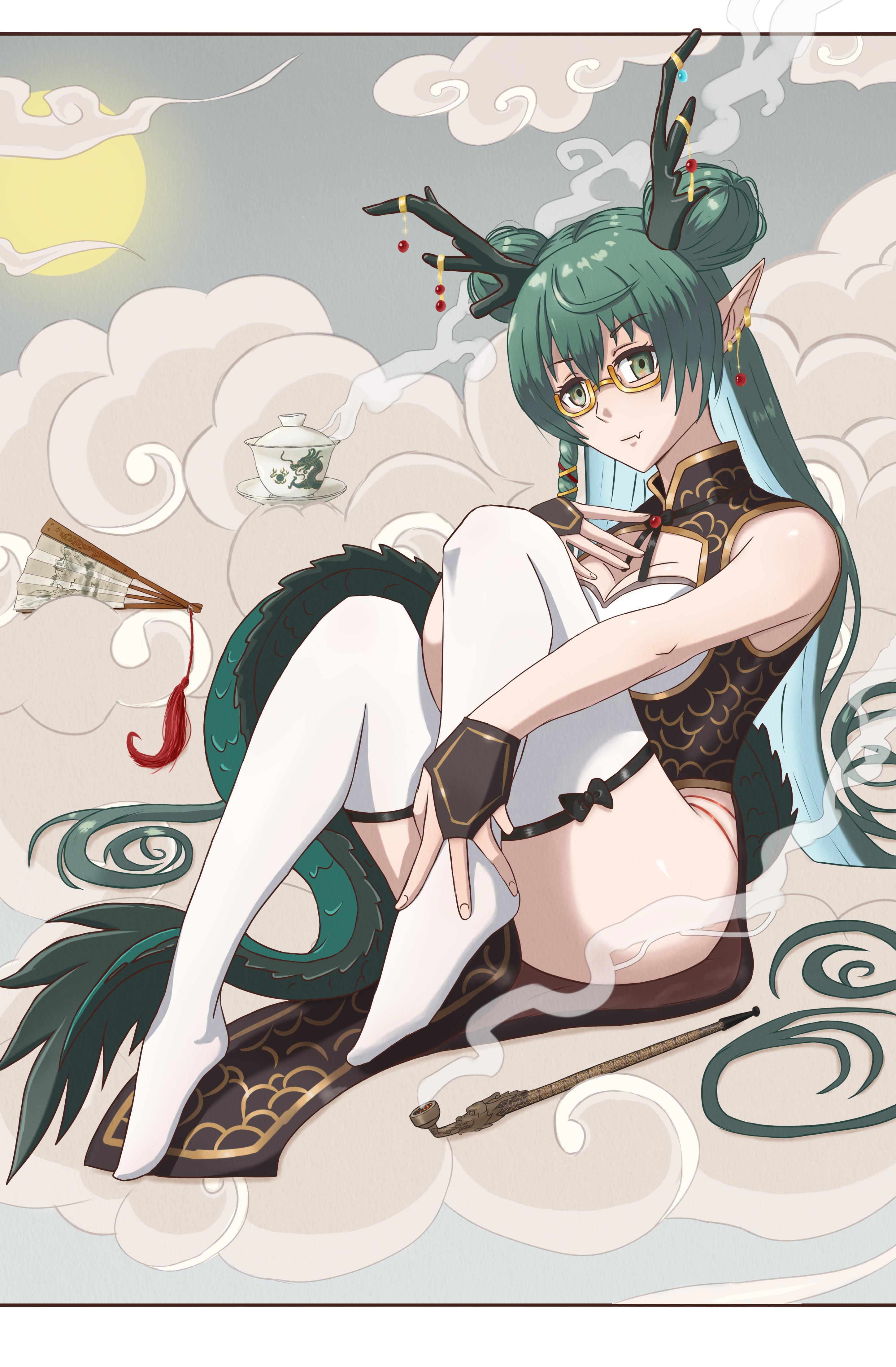 Ну, лучше поздно, чем никогда. В итоге арт сделан. Хуманизация, зелёная драконо-девочка в ципао.