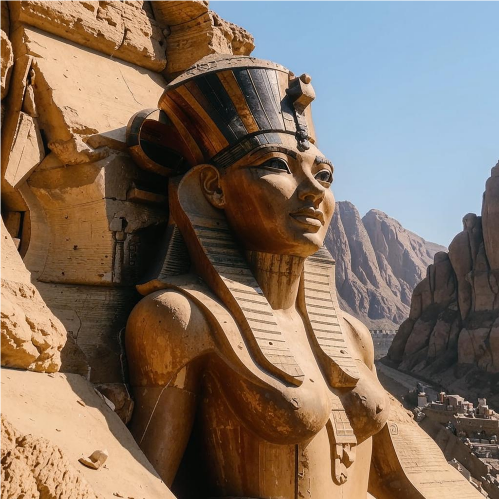 Аменемхет обернулся через плечо и как-то странно глянул на спутника, потом вернулся к созерцанию лика Хатшепсут. Да, это была именно она. Ни немес, ни бородка, ни суровый и грубоватый вид не могли скрыть явные черты Великой царицы.