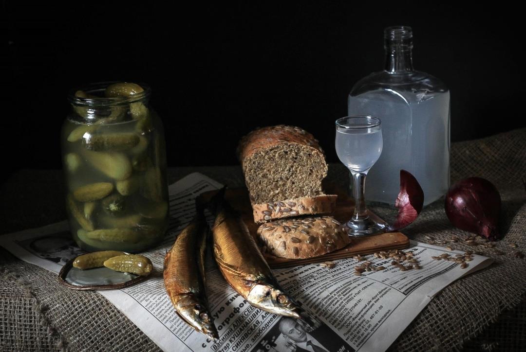 Они сидели за столом, на клеенчатой скатерти стояла бутылка водки и пара граненых стаканов. Рядом на тарелке лежала нарезанная селедка, на другой тарелке дымящаяся картошка.