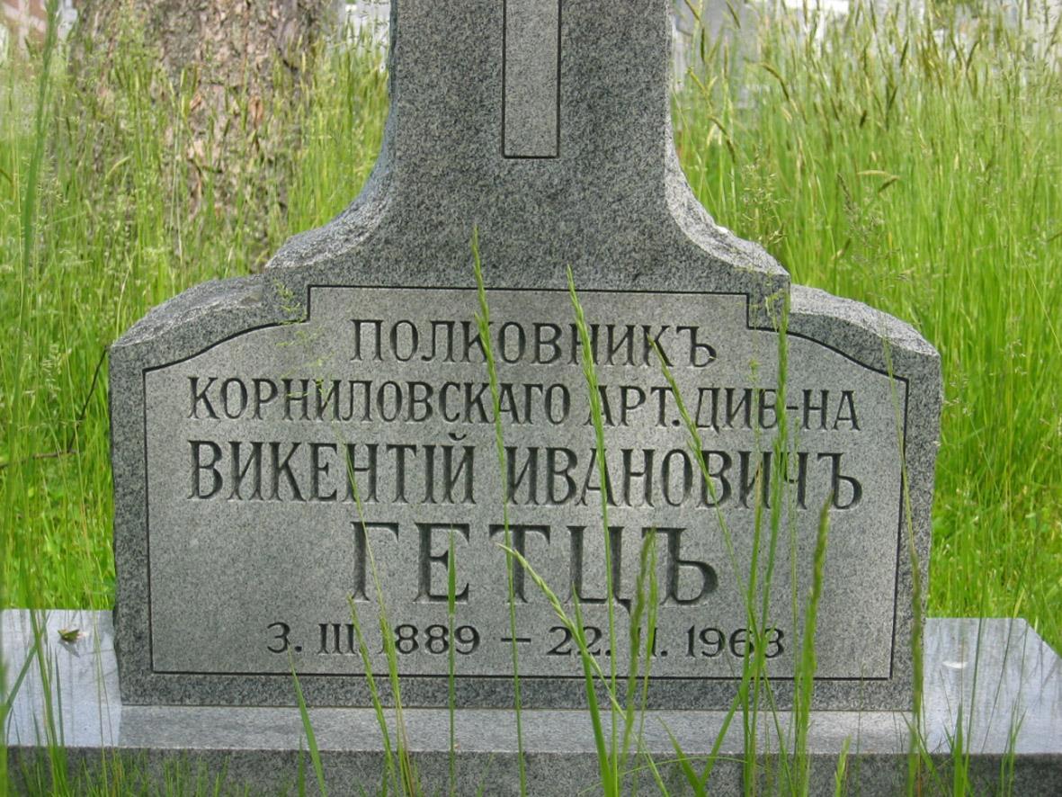 Командиром нашего юнкерского, 2-го взвода был полковник Викентий Иванович Гетц. Не могу не остановиться на яркой фигуре нашего Викентия Ивановича. Немного выше среднего роста, могучего телосложения, обладатель прекрасного тенора, отличный строевик, В. И. был, кроме того и большим патриотом. Поверив хитлеровским обещаниям «освобождения», он, как и многие верные сыны России, пошел добровольно на Восточный фронт переводчиком. Увидев там, вместо освобождения, только завоевание русской земли и народа, В. И. покинул пределы России с большими затруднениями, добрался обратно в Болгарию и немедленно вступил в ряды Русского Корпуса, надеясь в его рядах принести посильную помощь Родине.